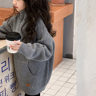 女童毛衣半拉链高领套头针织衫洋气2024新款秋装日系儿童翻领上衣
