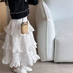 女童半身裙春秋款2024新款儿童荷叶边裙子中大童白色公主裙蛋糕裙