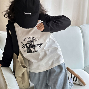 女童长袖t恤2024新款秋装大童洋气宽松休闲圆领体恤儿童打底上衣