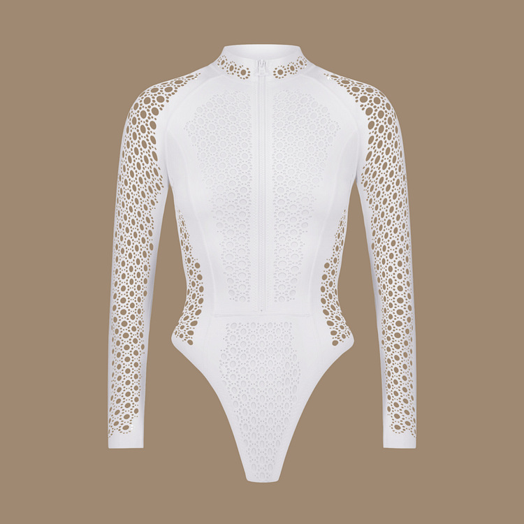 2024 유럽과 미국의 새로운 Amazon AliExpress 흰색 중공 긴 소매 원피스 수영복 여성 국경 간 폭발 서핑 세트