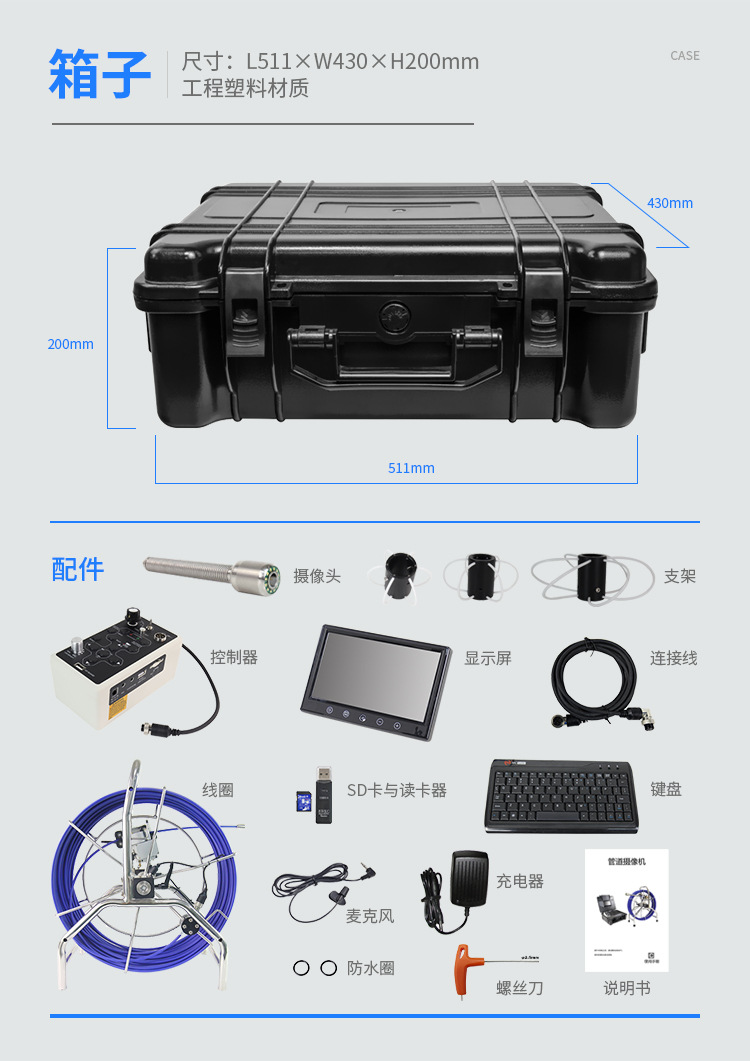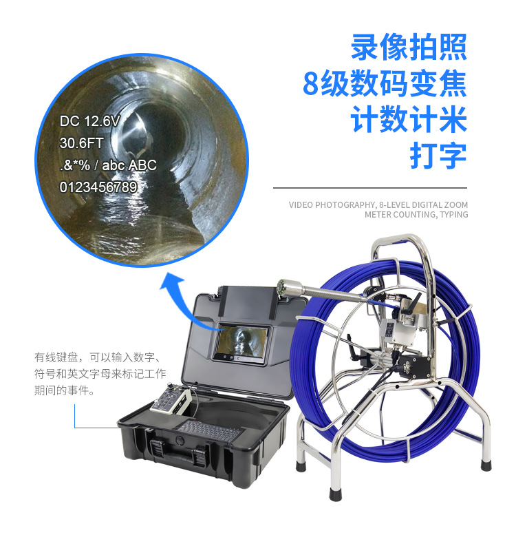 9inch 고화질 카메라 산업용 파이프라인 내시경 중형 검사 장비 하수 배수관 위치 자동 조정
