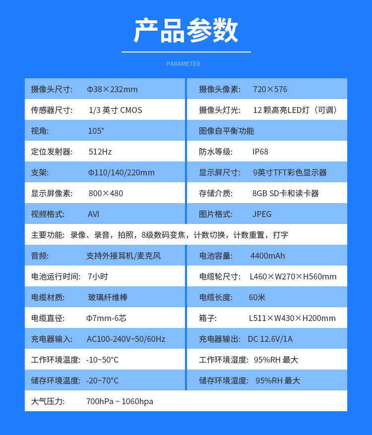 9inch 고화질 카메라 산업용 파이프라인 내시경 중형 검사 장비 하수 배수관 위치 자동 조정스토어 가기