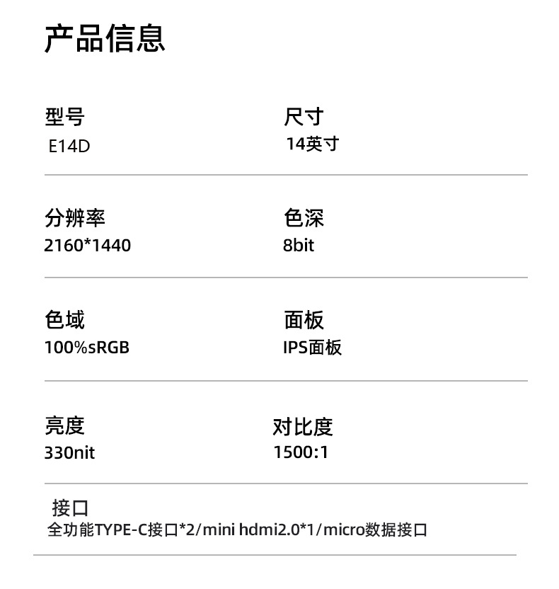• 14inch -2K HD 휴대용 스크린(E14D)