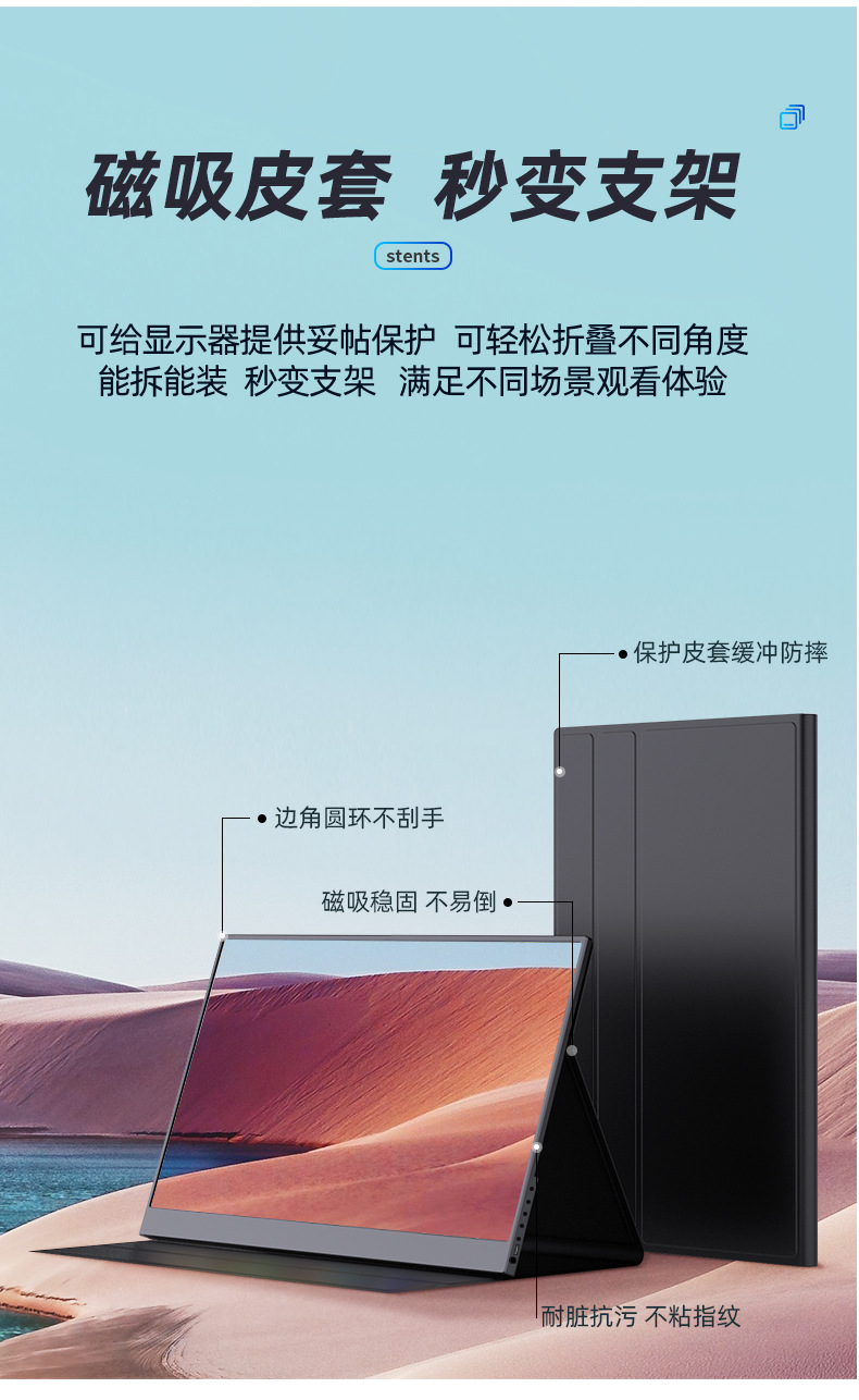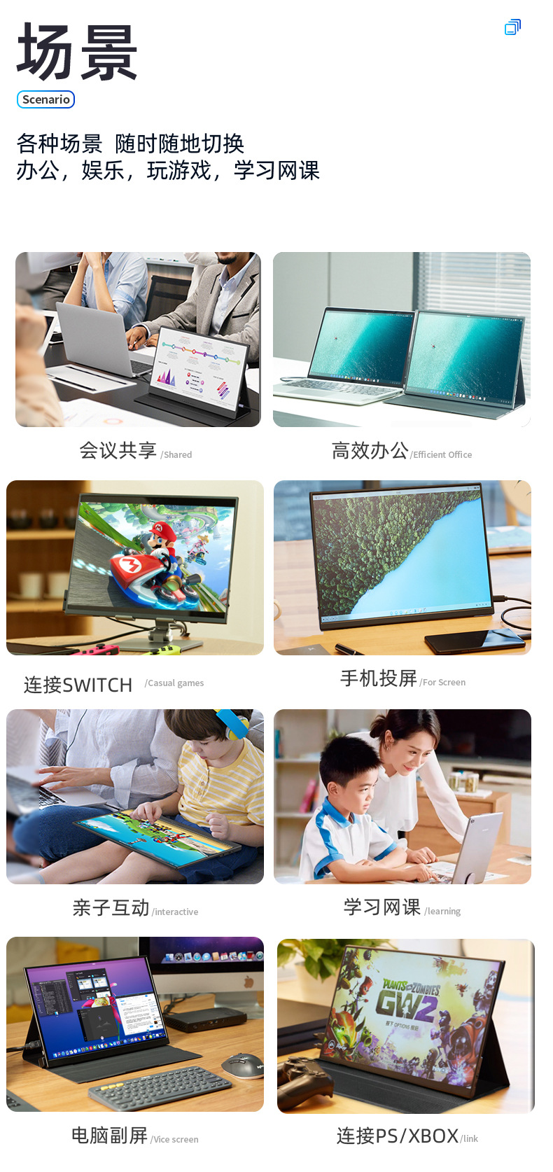 국경 14 인치 2K HD 휴대용 디스플레이 스위치 외부 화면 휴대 전화 컴퓨터 서브 화면 확장 화면