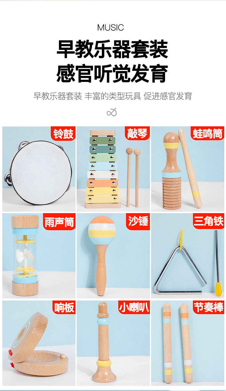 조기 교육 Orff 타악기 로그 세트 초등학생 교육 자료 탬버린 조합 모래 망치 악기 전체 세트스토어 가기