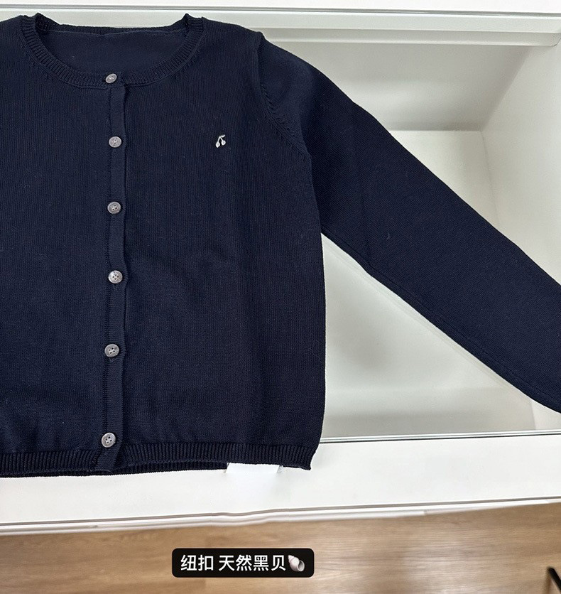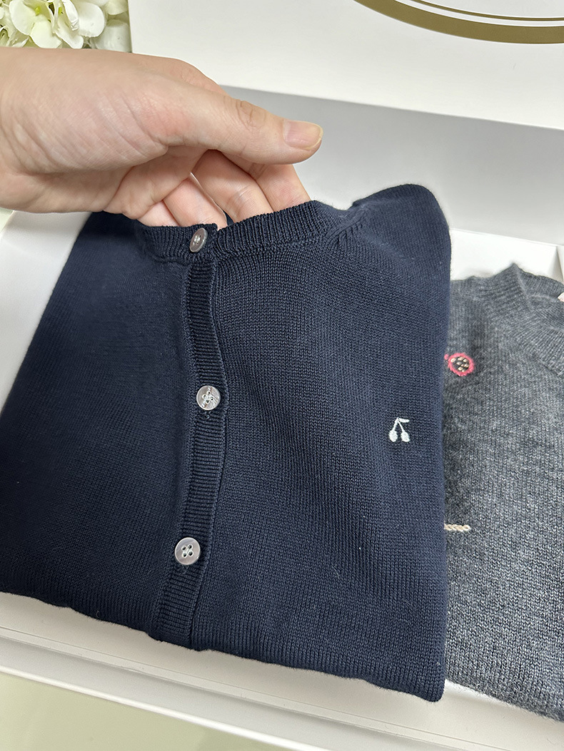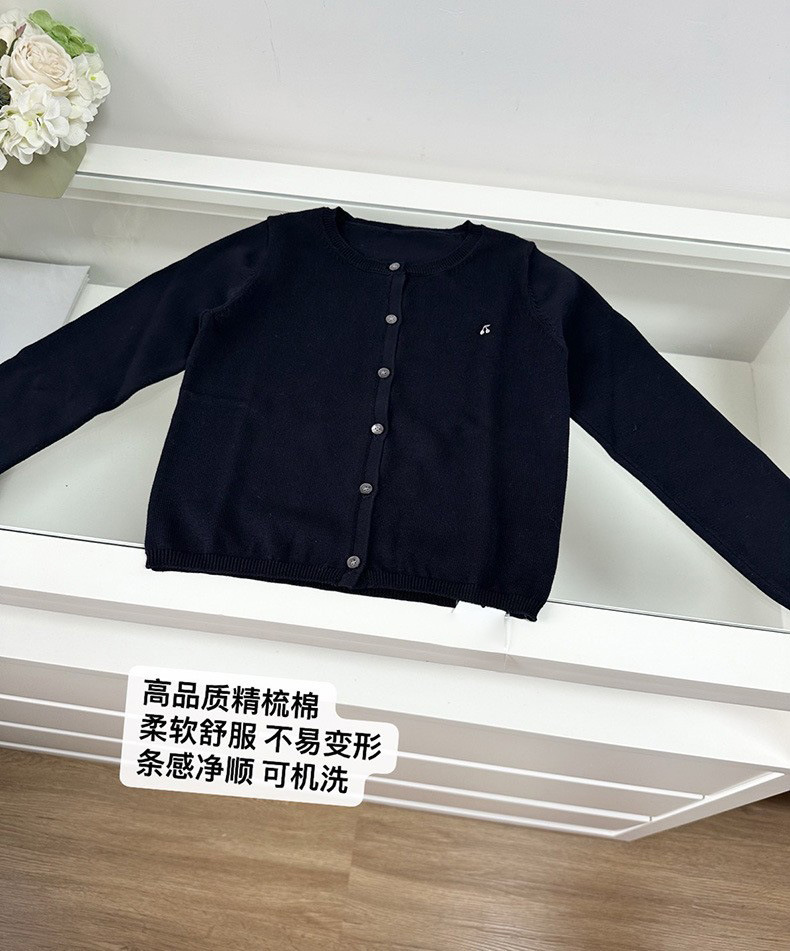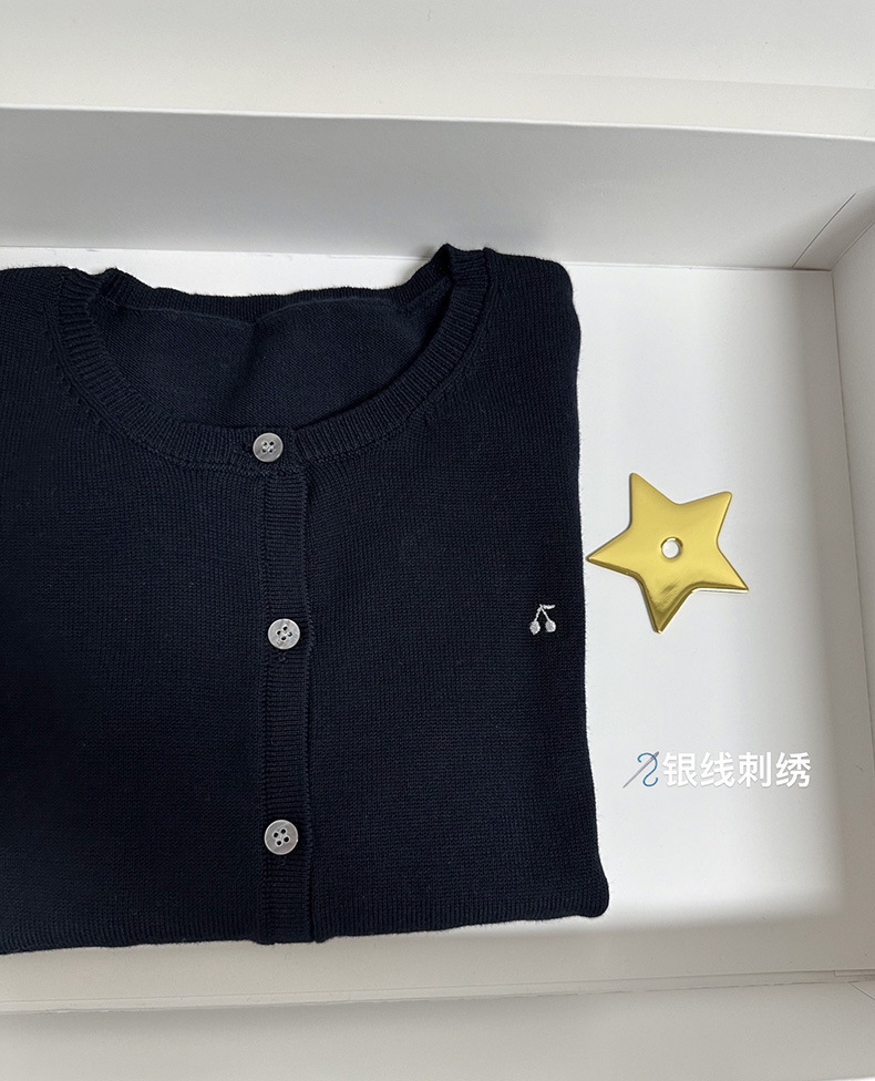 가을 2024 여자 아카데미 스타일 니트웨어 체리 실버 자수 작은 카디건 아기 소녀 간단하고 절묘한스토어 가기