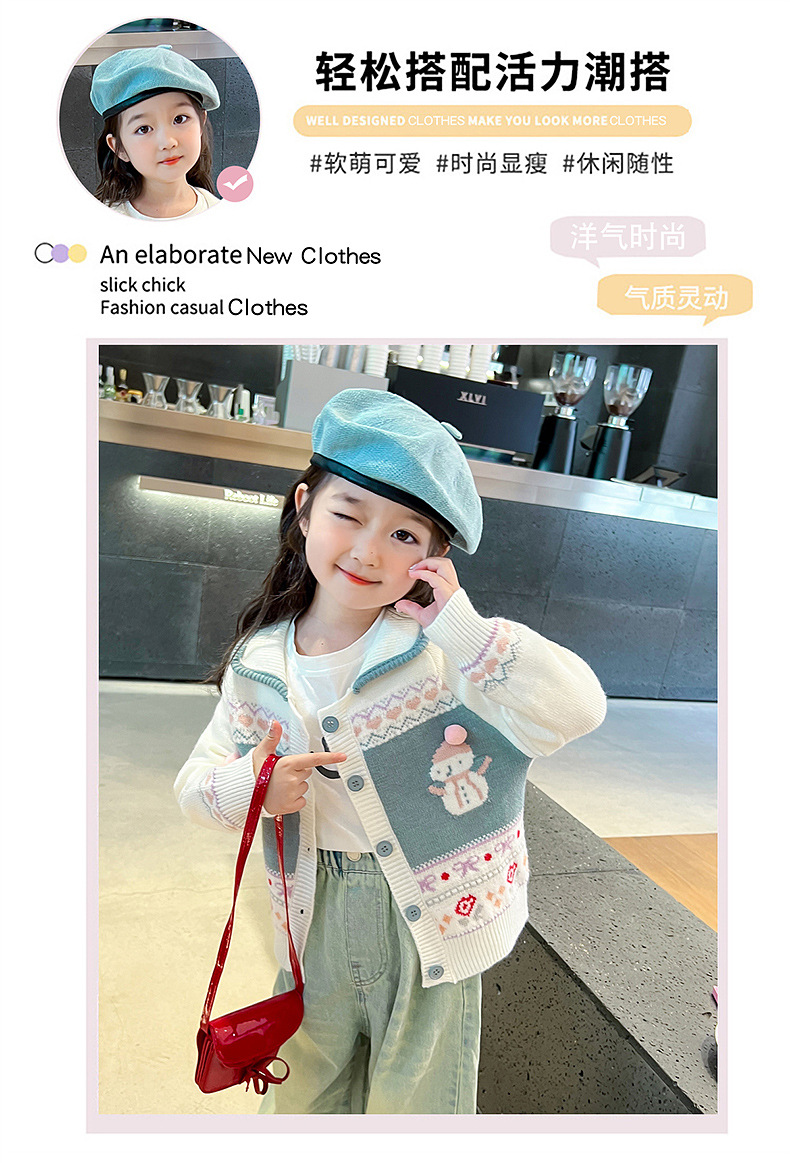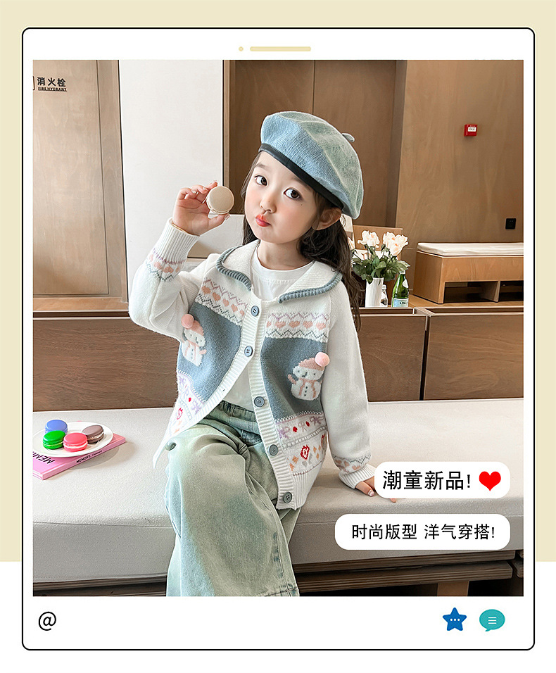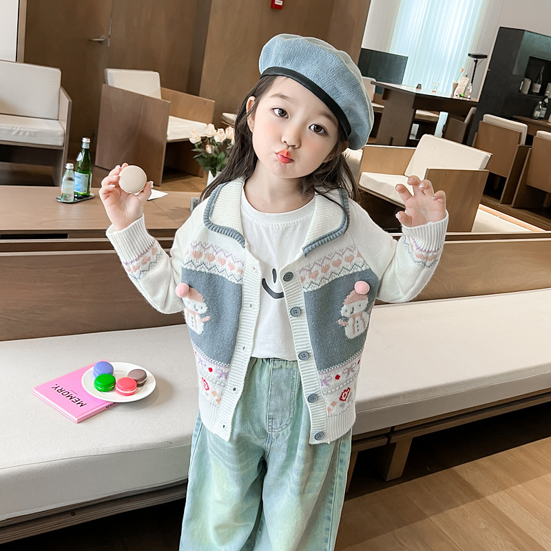 소녀 코트 가을 2024 새로운 아기 소녀의 세련된 세련된 니트 카디건 어린이 소녀의 최고 봄과 가을스토어 가기
