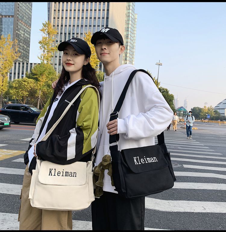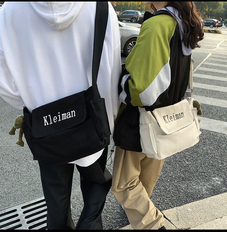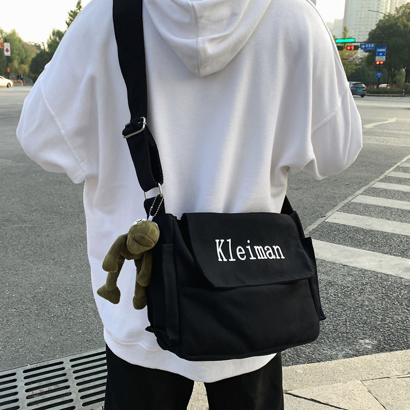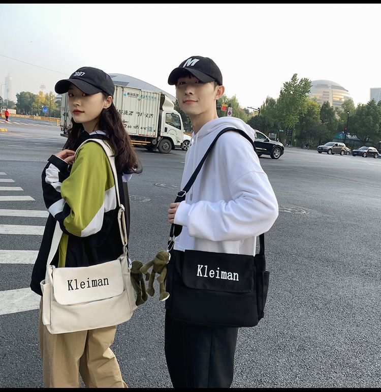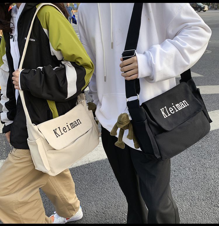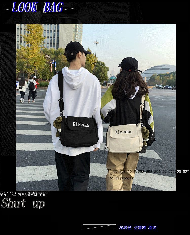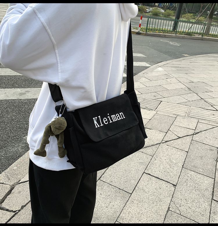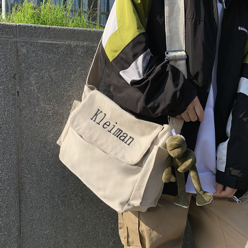 남성용 숄더백 캔버스 여성용 일본식 한국어 버전 ins 심플하고 다재다능한 솔리드 컬러 대학생 캔버스 크로스백 남성용스토어 가기