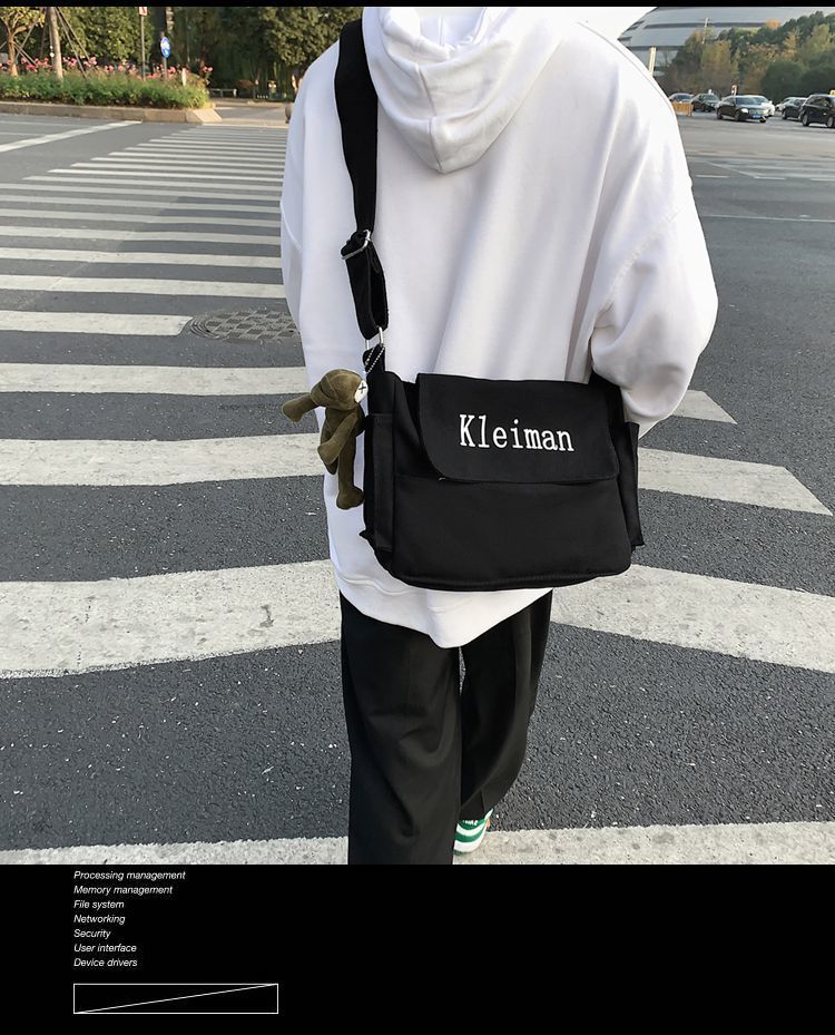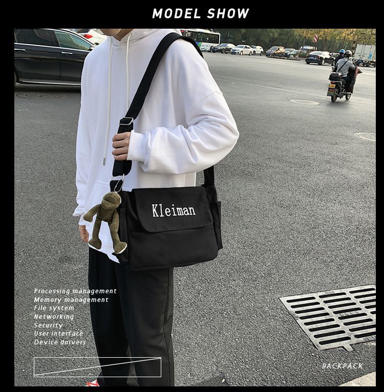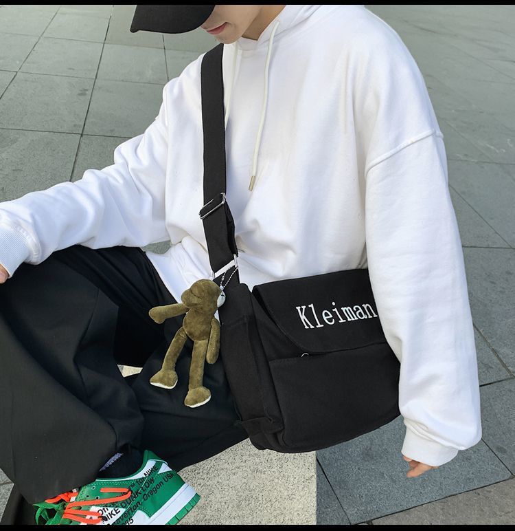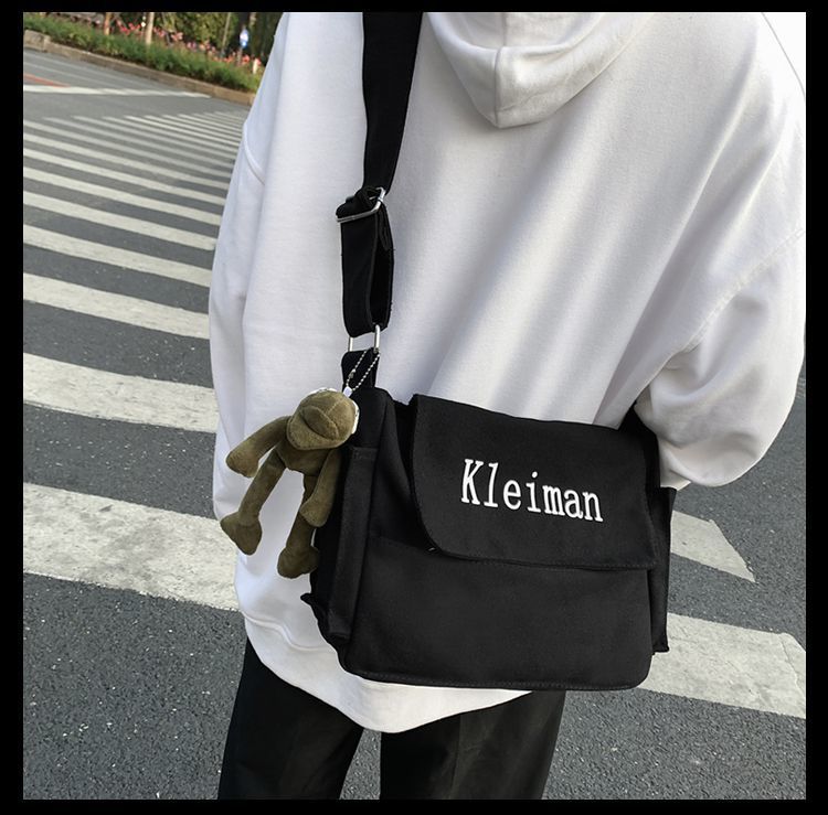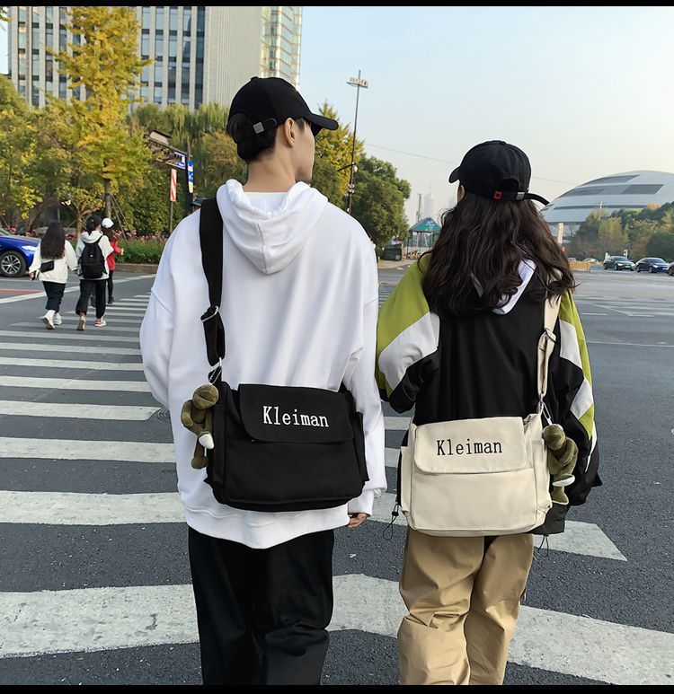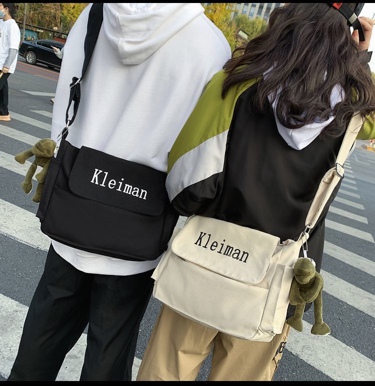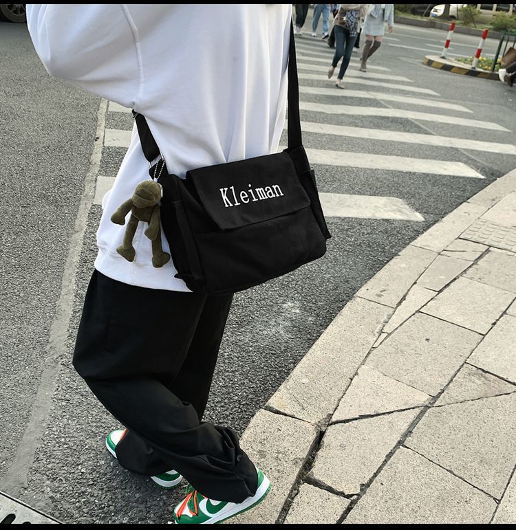 남성용 숄더백 캔버스 여성용 일본식 한국어 버전 ins 심플하고 다재다능한 솔리드 컬러 대학생 캔버스 크로스백 남성용스토어 가기