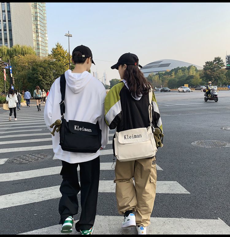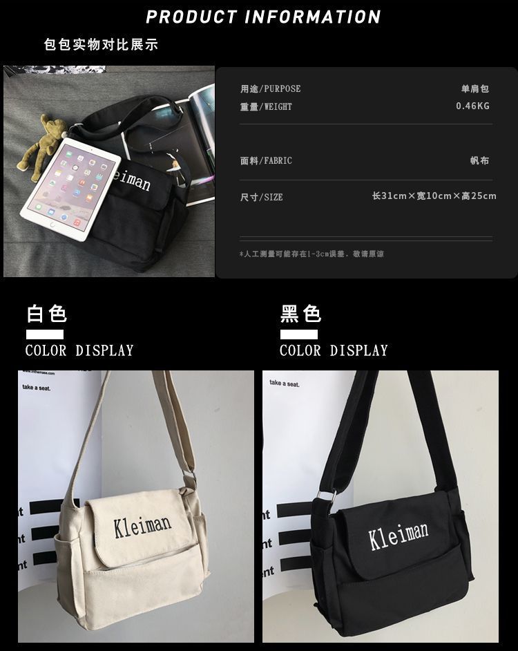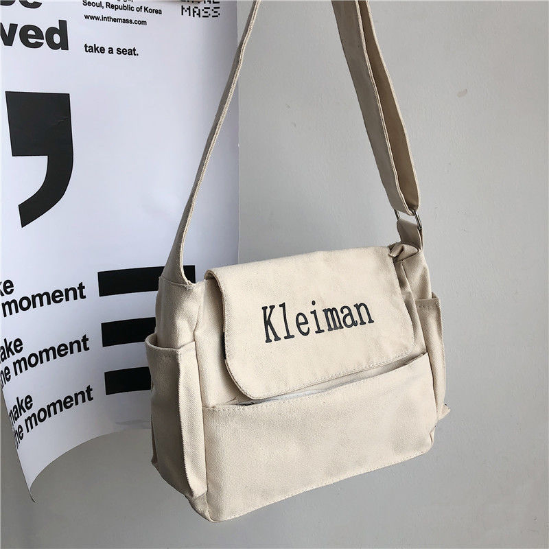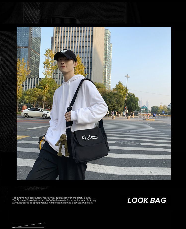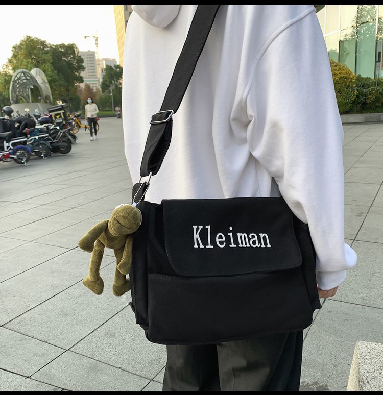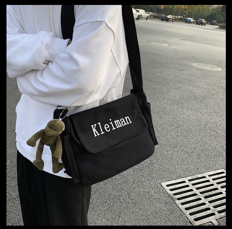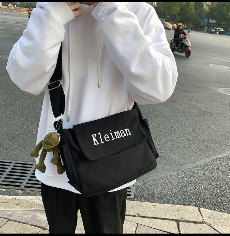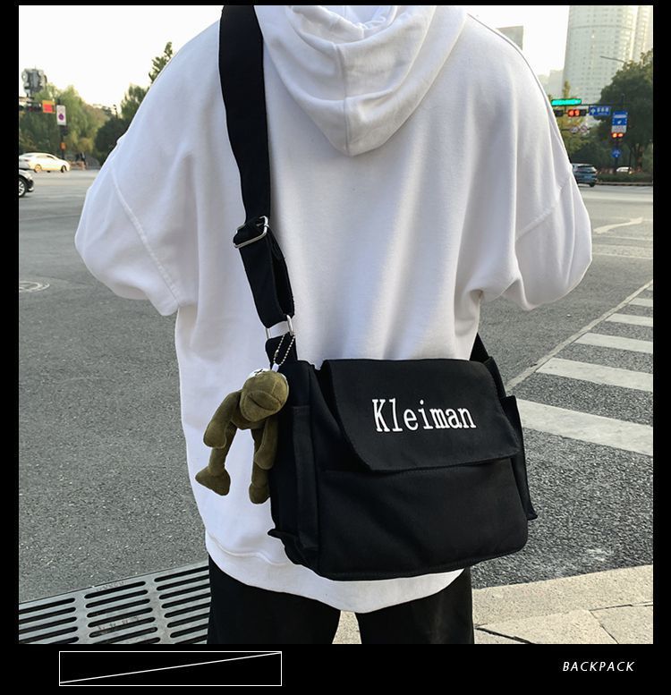 남성용 숄더백 캔버스 여성용 일본식 한국어 버전 ins 심플하고 다재다능한 솔리드 컬러 대학생 캔버스 크로스백 남성용스토어 가기