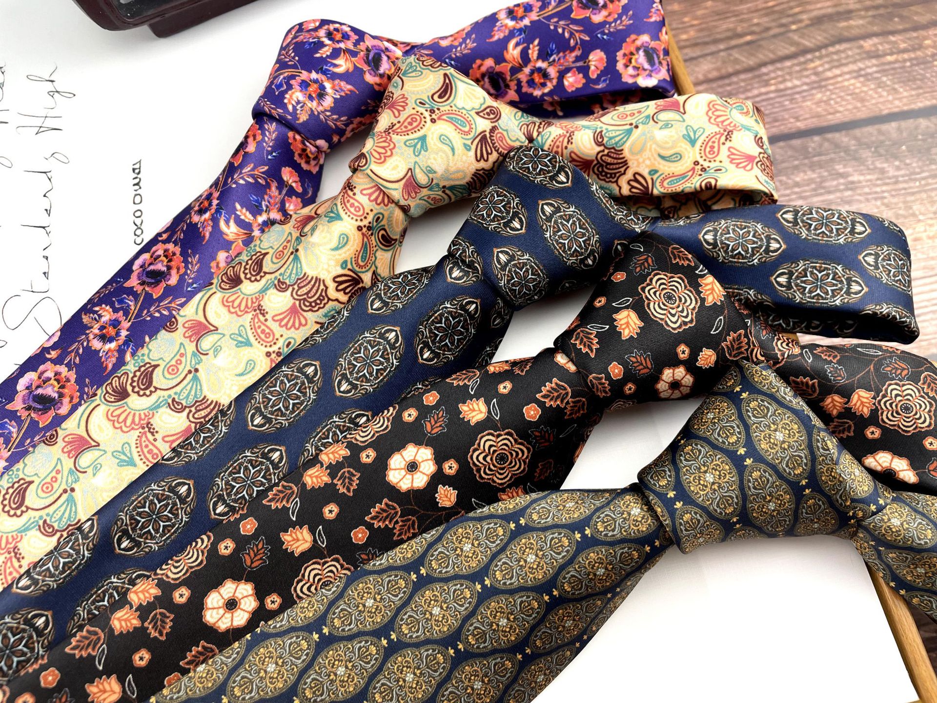 빈티지 이탈리아 꽃 인쇄 넥타이 남성 홍콩 스타일 캐주얼 패션 예술적 여성 작업 원피스 비즈니스 전문 패턴