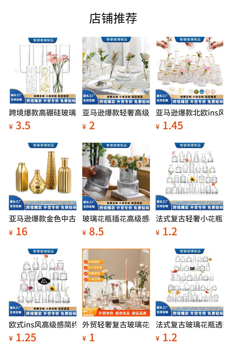3종 세트 고급 미니 꽃병 수출용 세트 공예품 장식 투명 꽃병 거실 장식스토어 가기