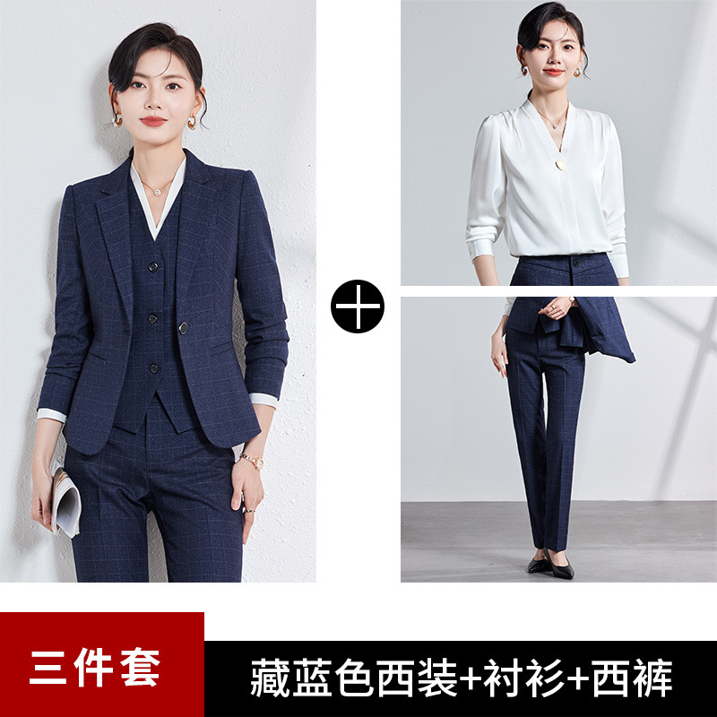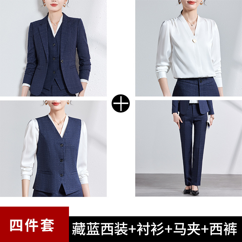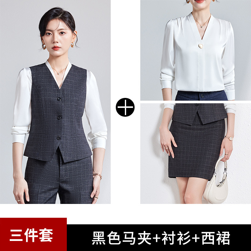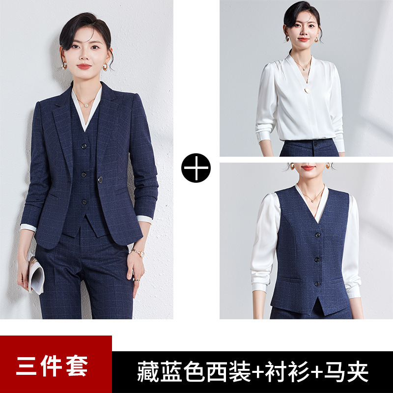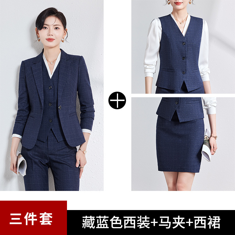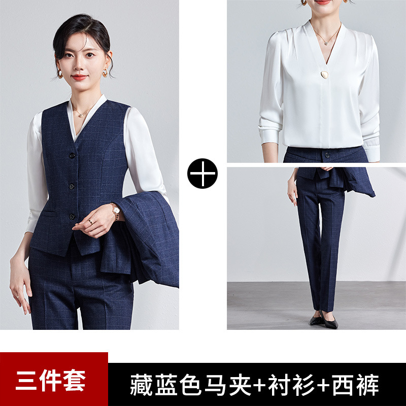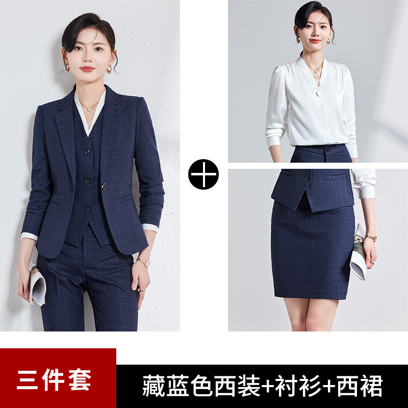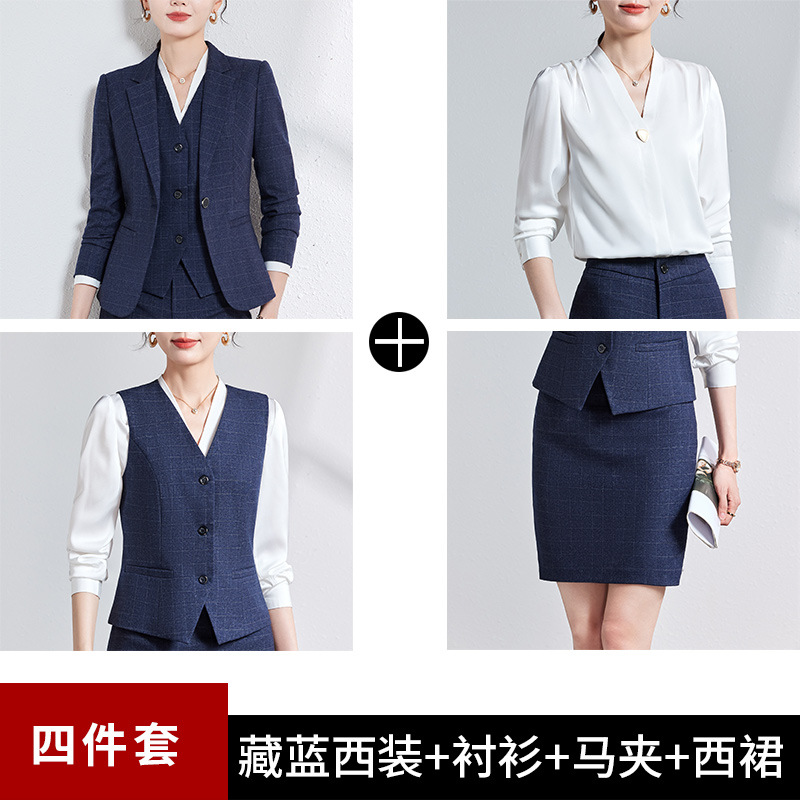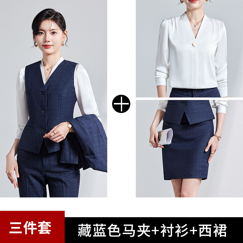 • 남색 정장 + 스커트 + 조끼 + 6622 셔츠