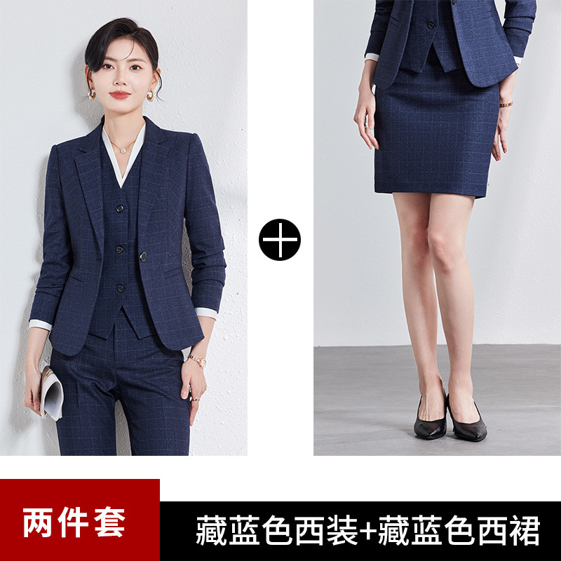 • 네이비 블루 슈트 + 스커트 + 조끼