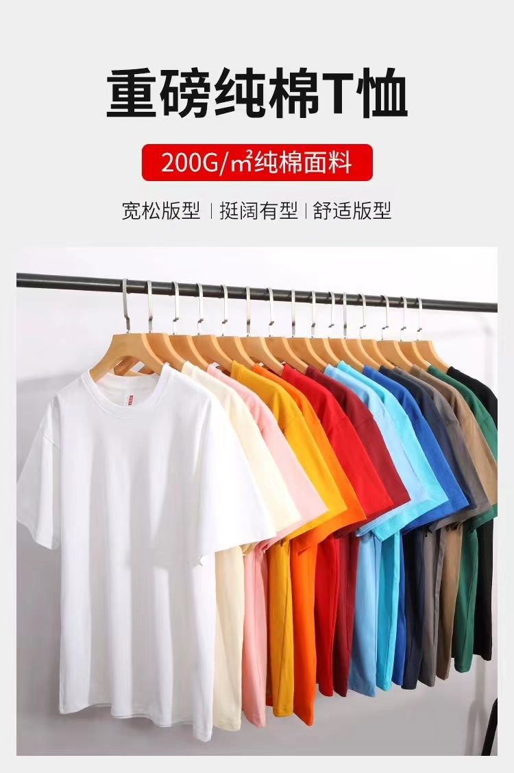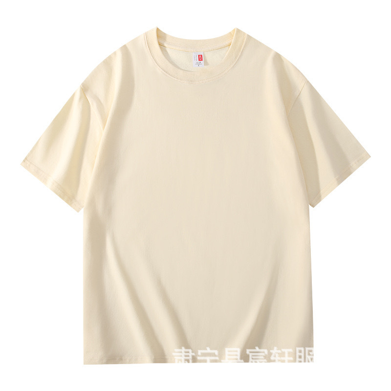 200g 신장 긴 스테이플 코튼 무거운 남성 반팔 티셔츠 단색 여름면 둥근 목 바닥 셔츠 느슨한 반 소매스토어 가기