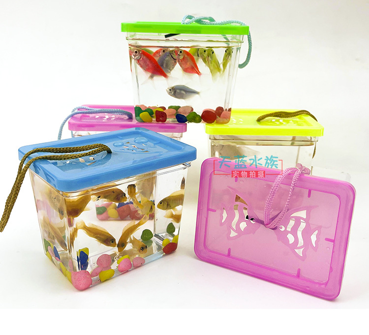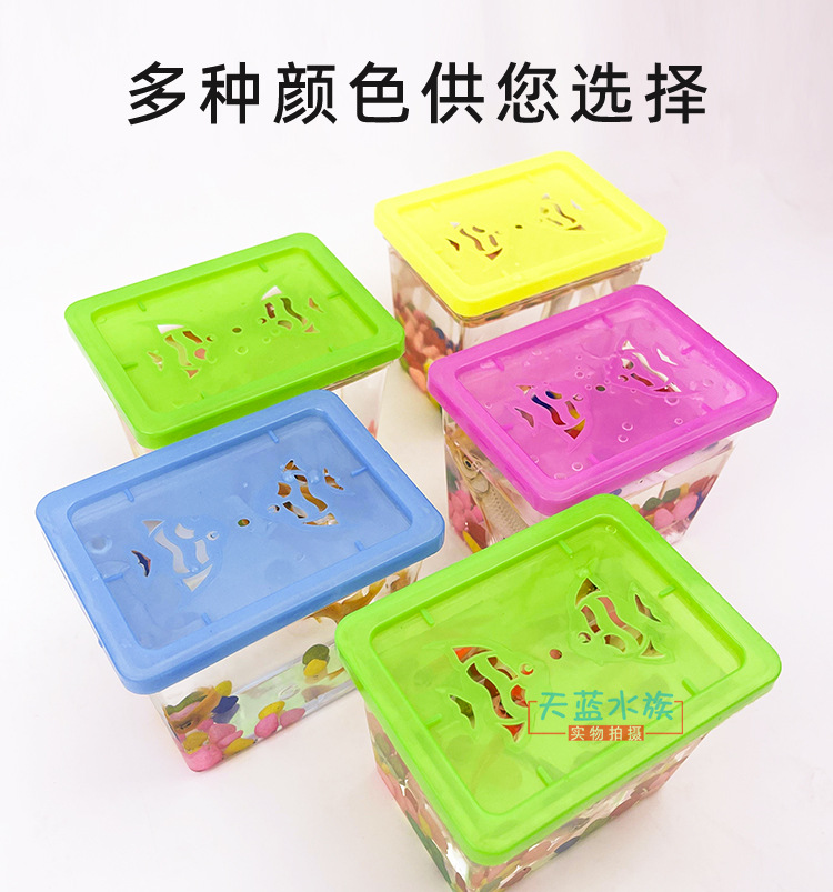 새로운 스타일 싸우는 물고기 컵 휴대용 작은 물고기 병 거북이 병 사각형 플라스틱 작은 물고기 탱크 싸움 물고기 상자 투명 애완 동물 상자 해파리 컵