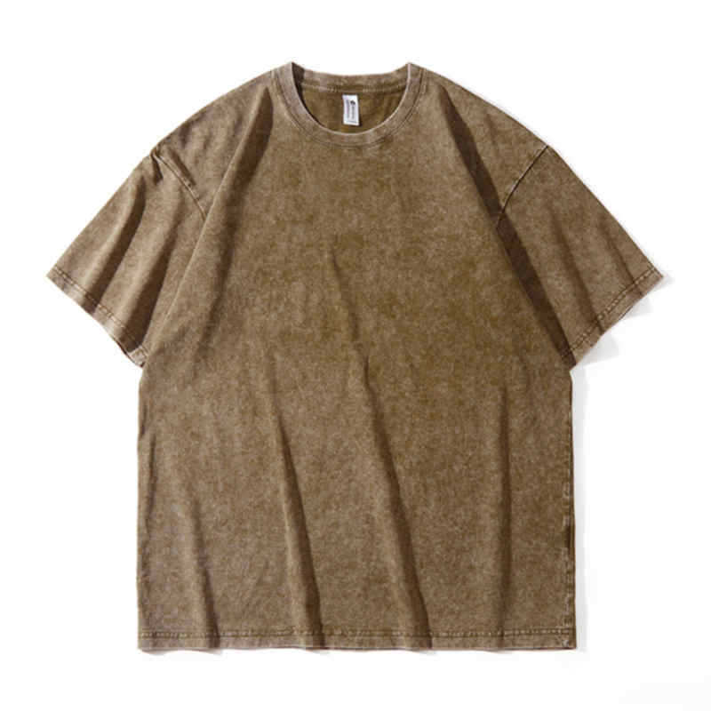 크로스보더 아메리칸 스타일 230g 헤비웨이트 순면 워싱 티셔츠 남성 트렌디 브랜드 반팔 프린팅 자수 로고스토어 가기