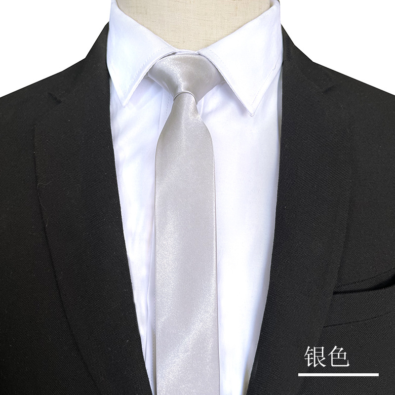 좁은 작은 5cm 넥타이 단색 남성 실크 컬러 셔츠 액세서리 흑백 캐주얼 로고의 한국어 버전스토어 가기