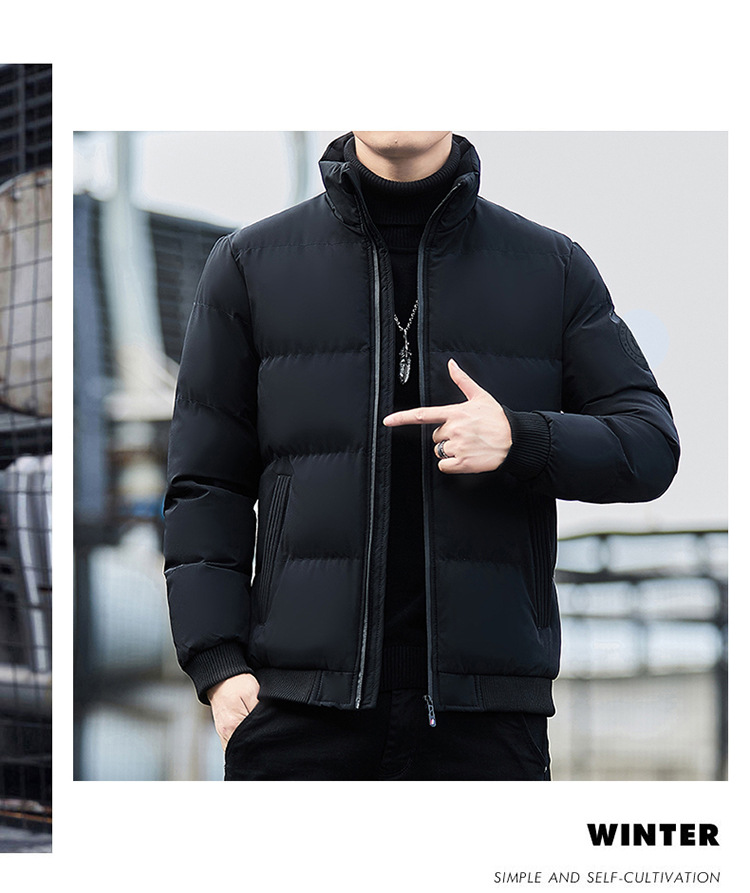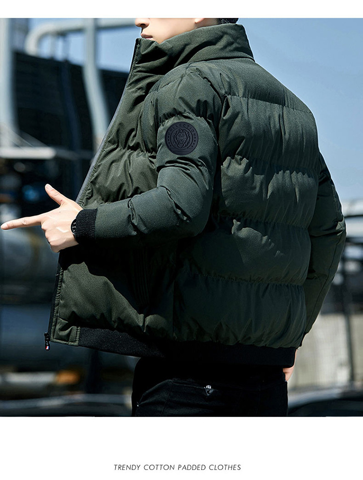 겨울 남성용 면화 패딩 코트 두꺼운 따뜻한 유지 유행 외주 남성 수직 칼라 청소년 면화 패딩 재킷 솔리드 컬러 외부 면화 패딩 재킷 착용스토어 가기