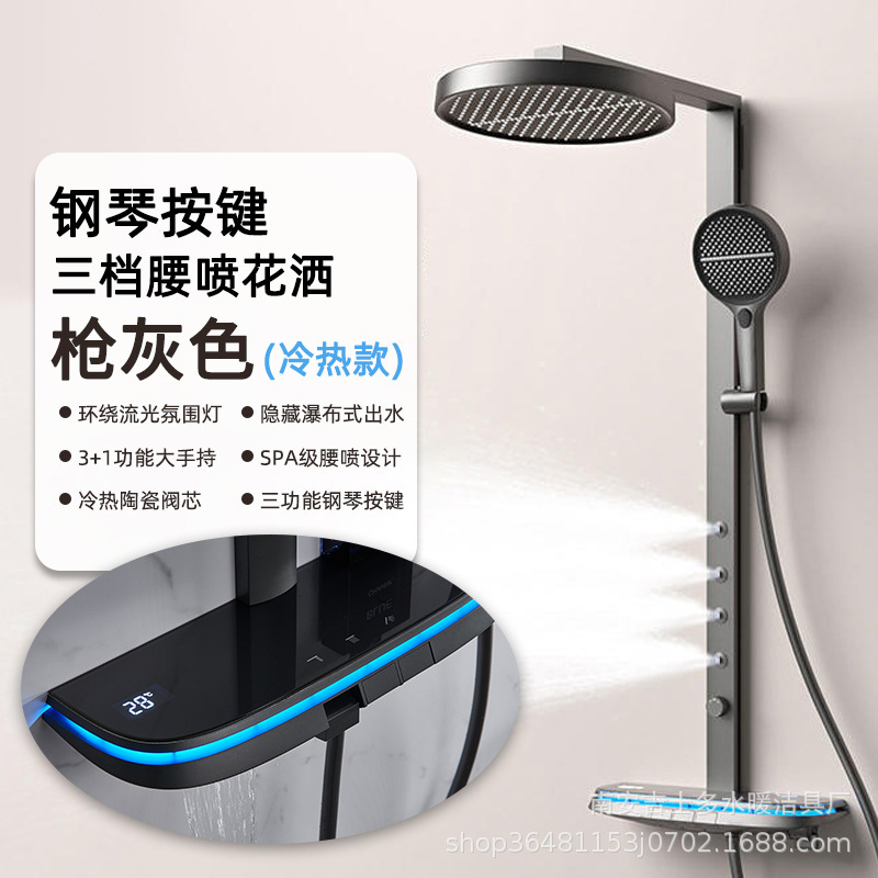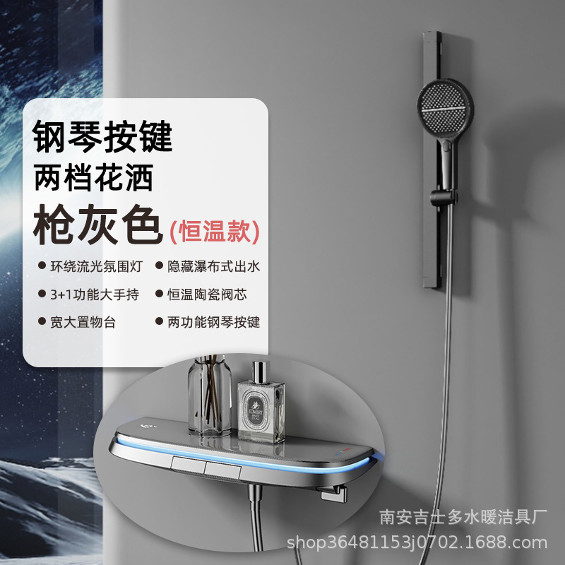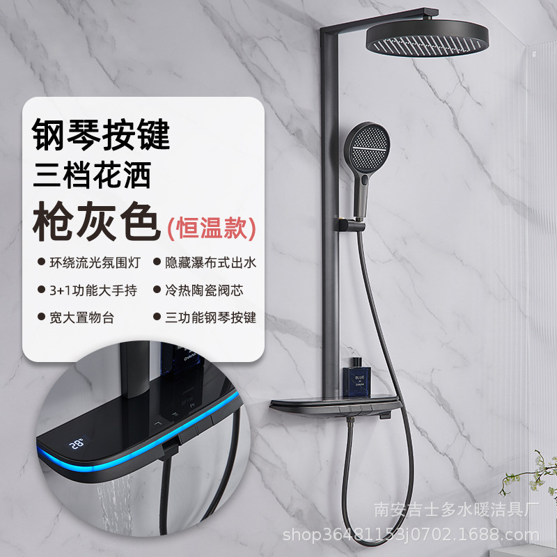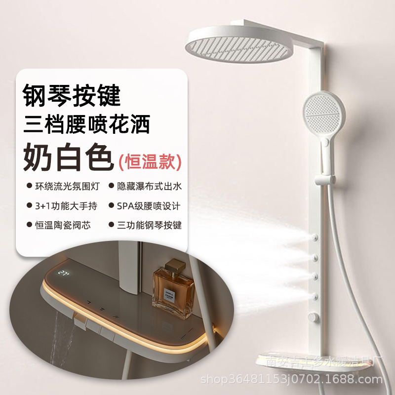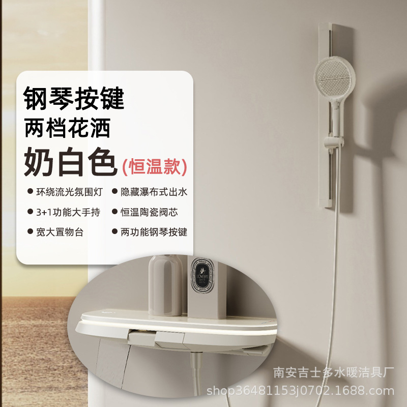 크림 스타일 밀크 화이트 샤워 샤워 세트 일정한 온도 비 목욕 가정용 욕실 디지털 디스플레이 샤워 헤드