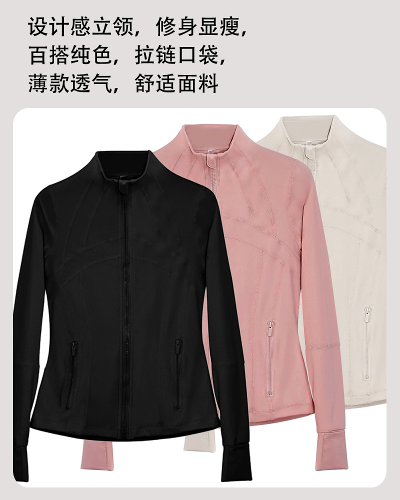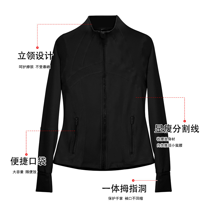 룰루 새로운 스포츠 재킷 코트 여성의 봄과 가을 수직 칼라 요가 의류 최고 슬림 핏 허리 통기성 피트니스