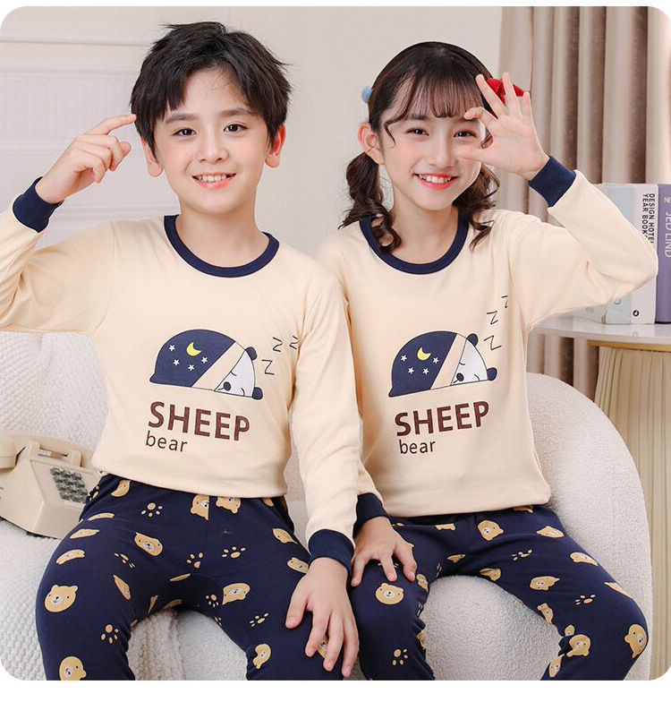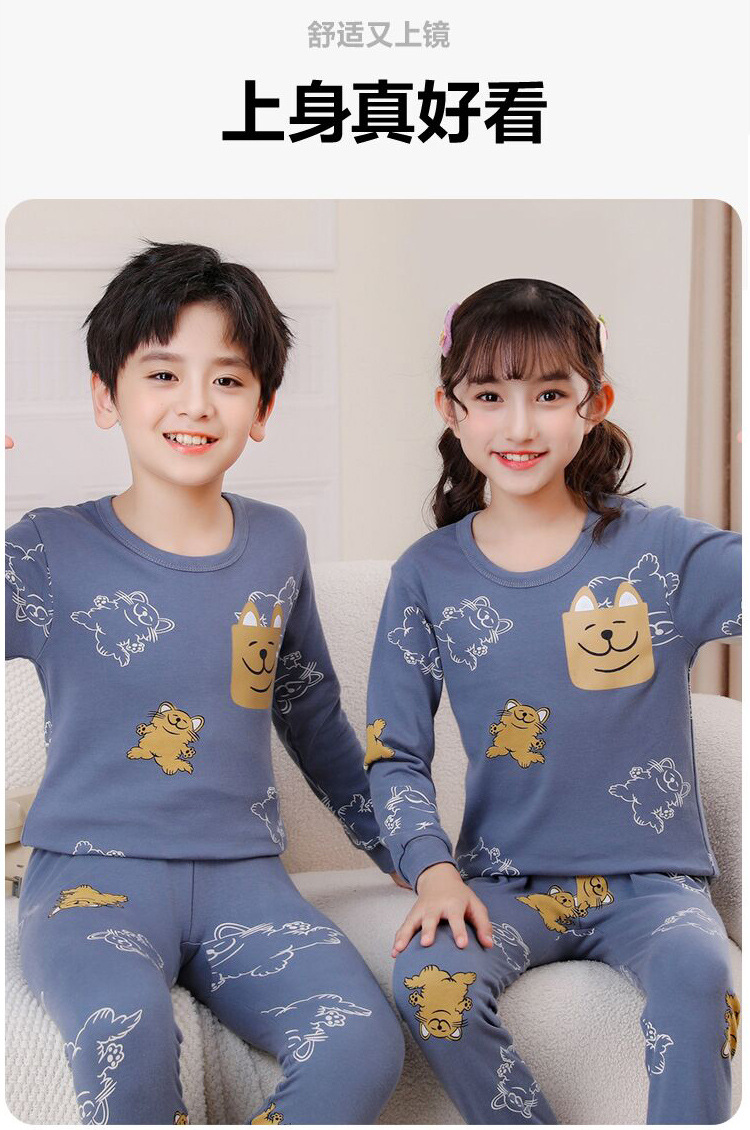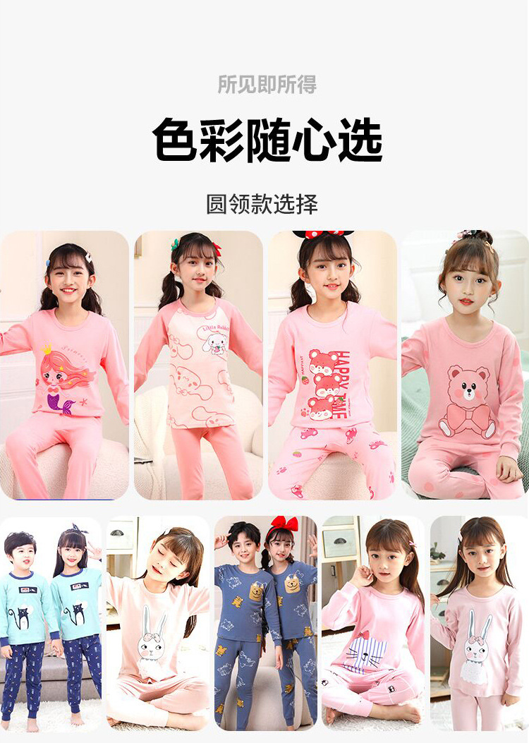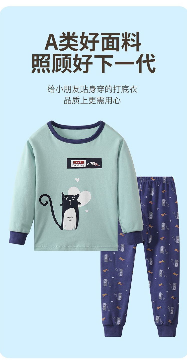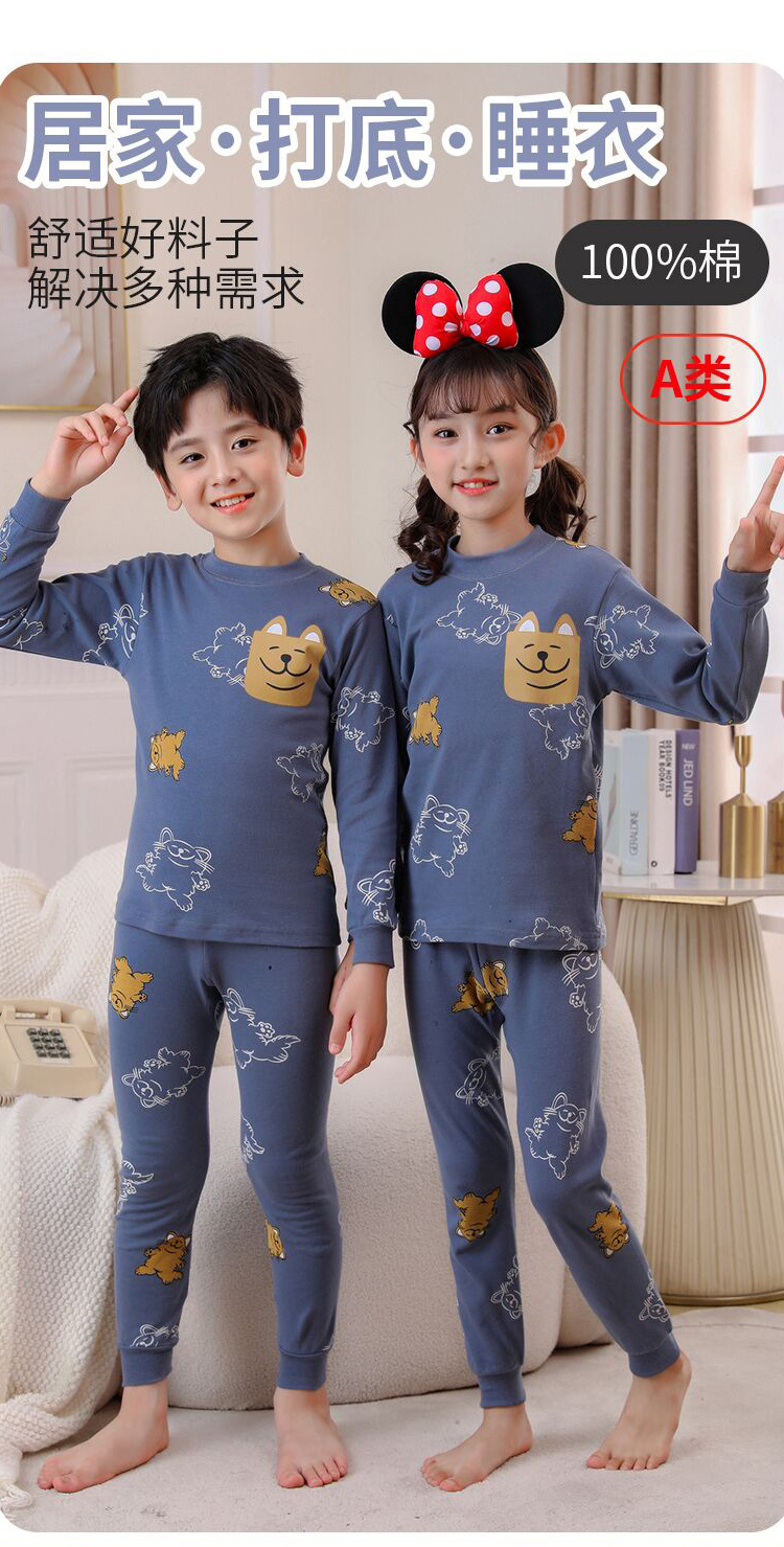 가을과 겨울 어린이 순면 홈 옷 어린이 만화 기본 속옷 세트 소년 소녀 둥근 목 면화 스웨터 파자마스토어 가기