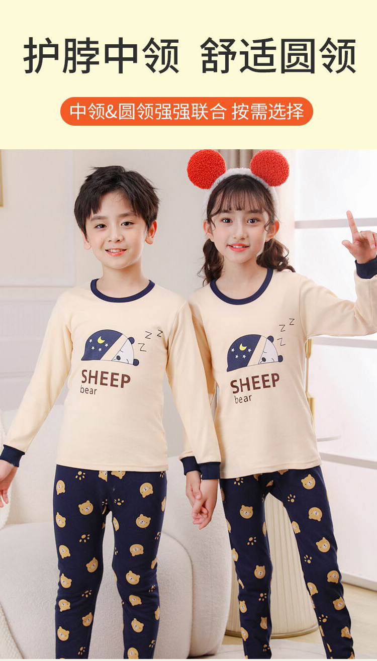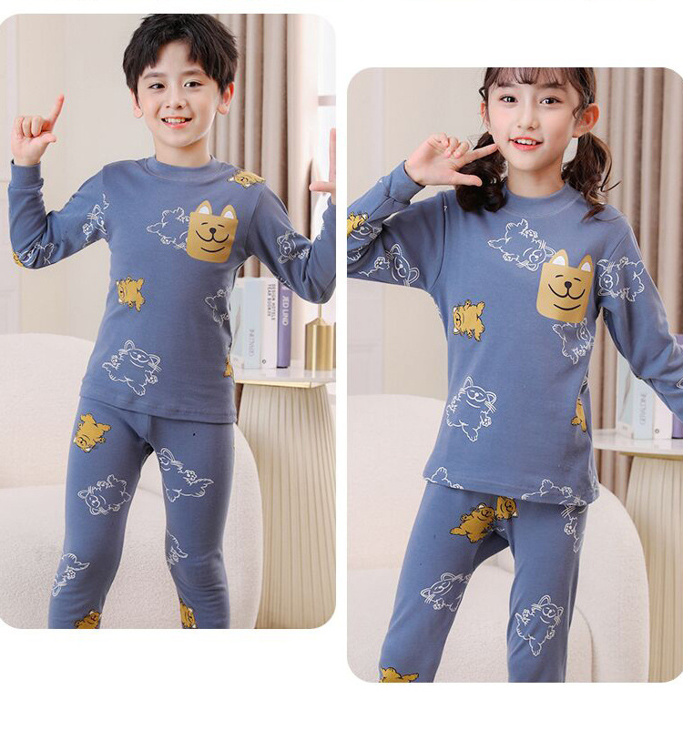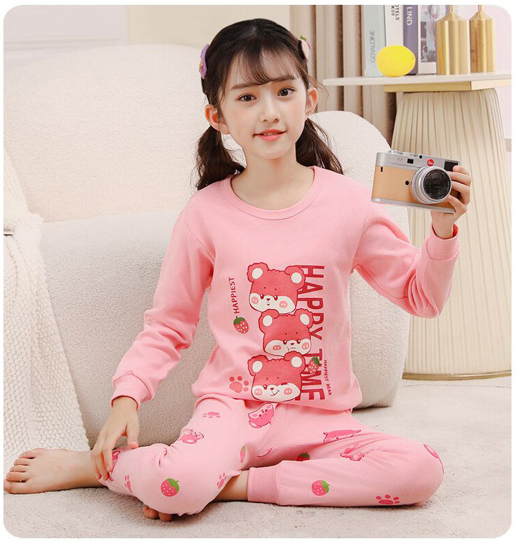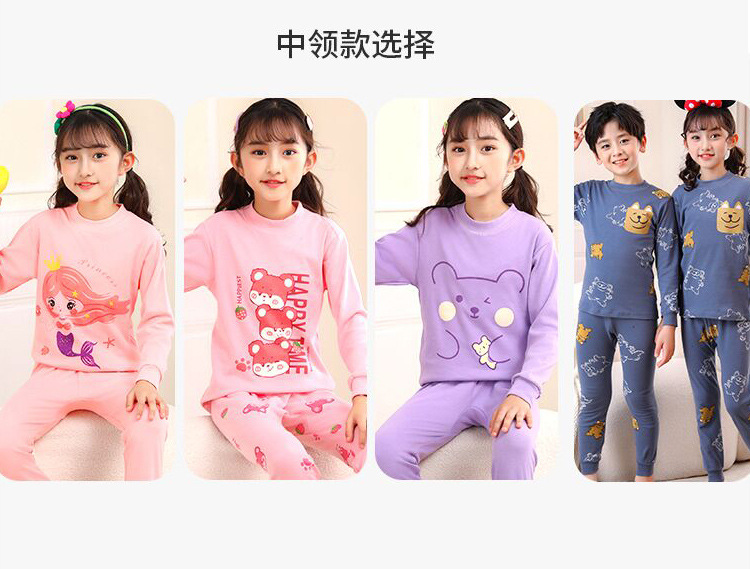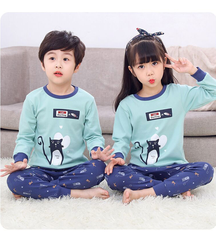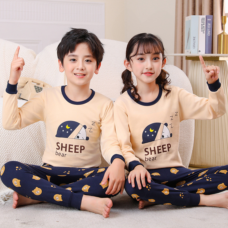 가을과 겨울 어린이 순면 홈 옷 어린이 만화 기본 속옷 세트 소년 소녀 둥근 목 면화 스웨터 파자마스토어 가기