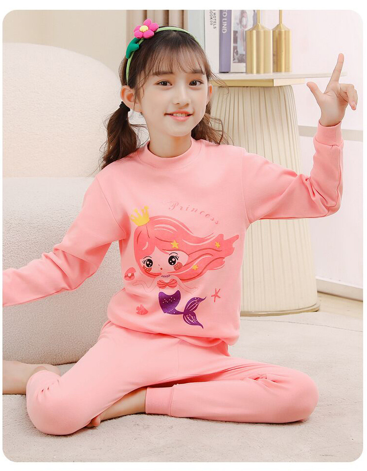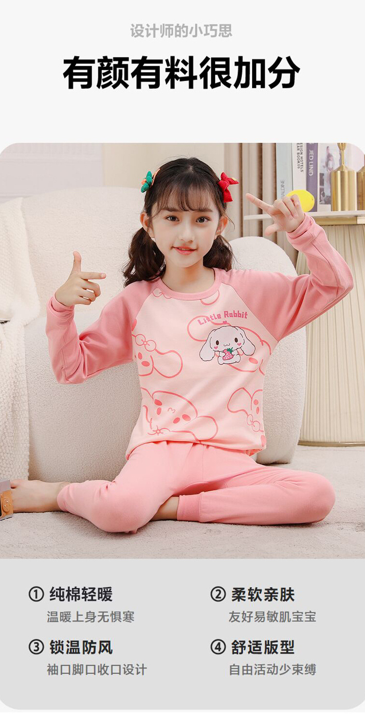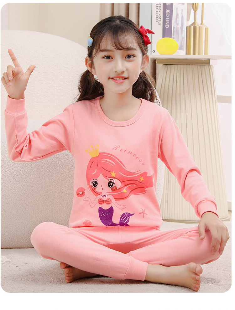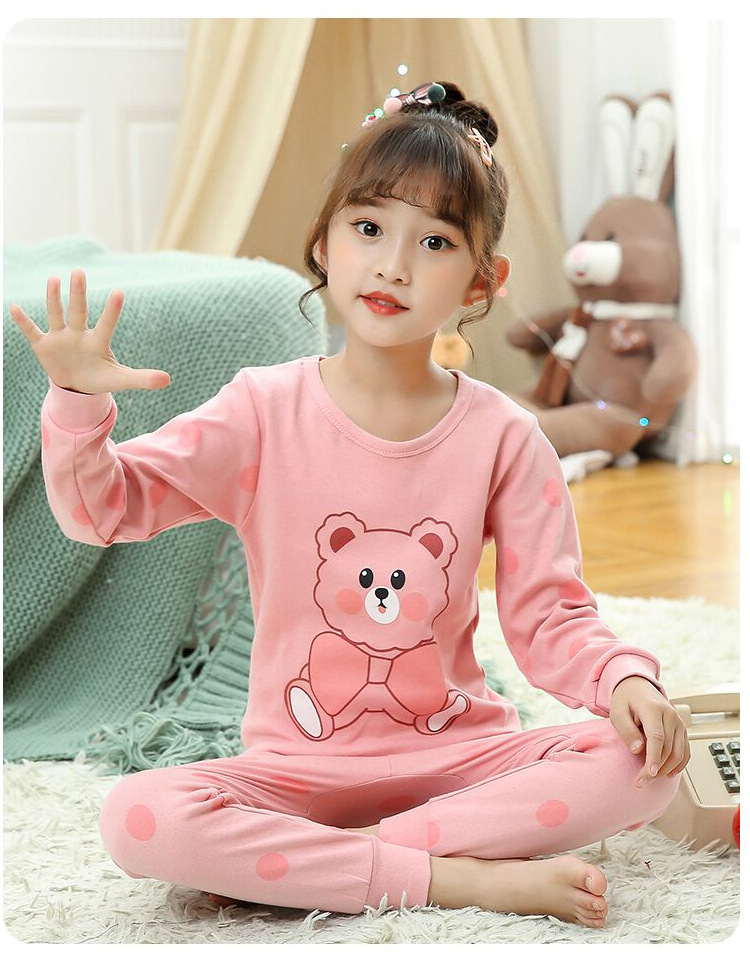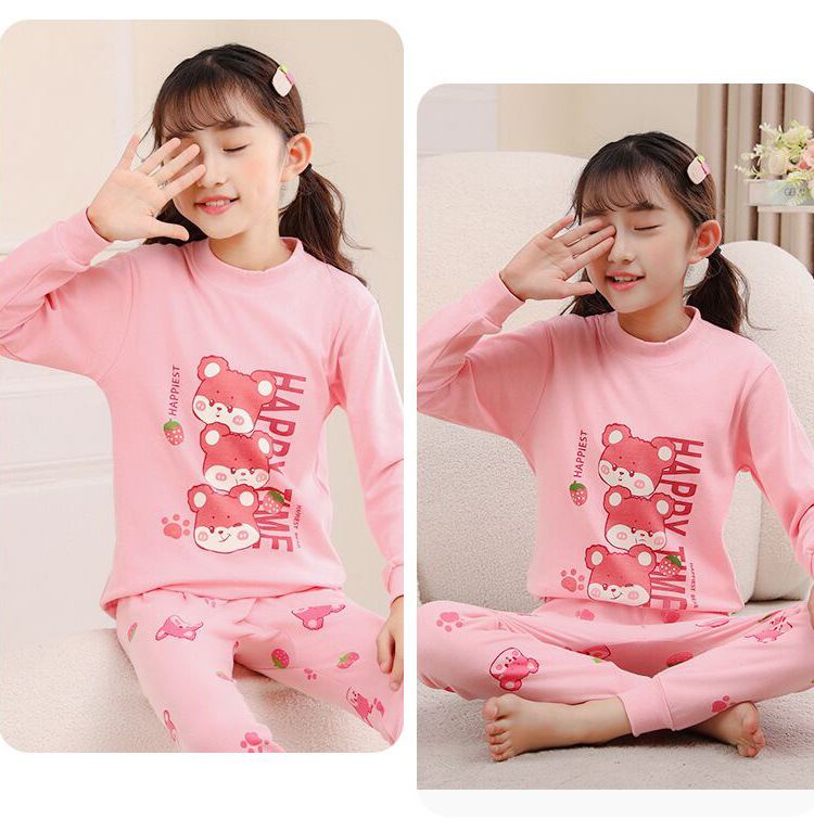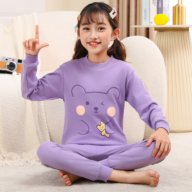 가을과 겨울 어린이 순면 홈 옷 어린이 만화 기본 속옷 세트 소년 소녀 둥근 목 면화 스웨터 파자마스토어 가기
