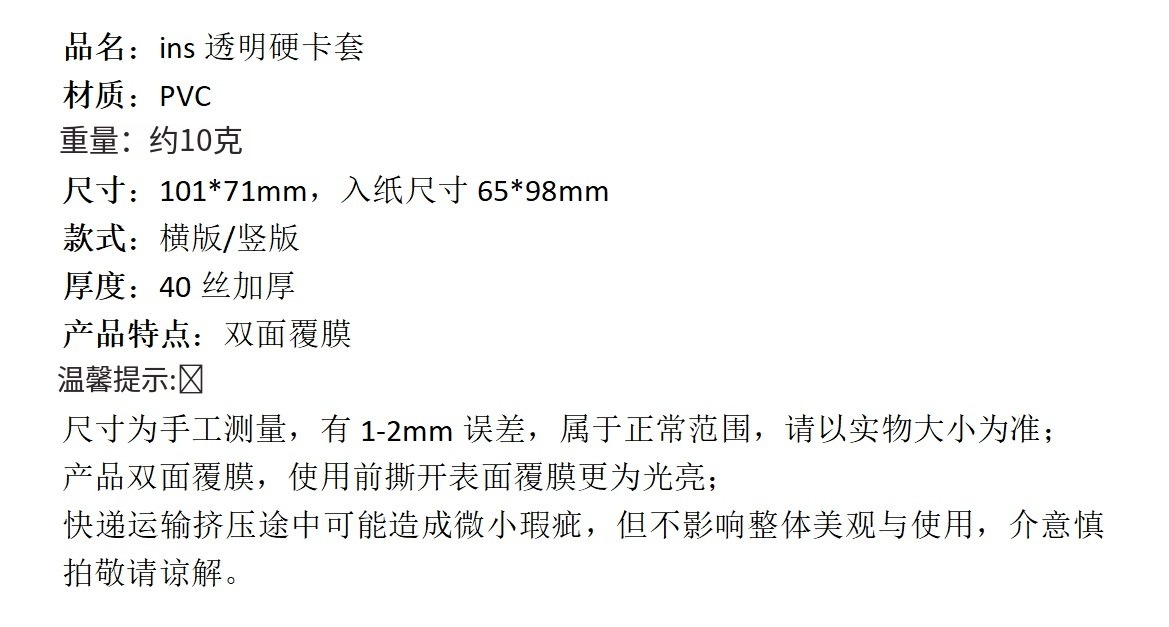 특수 하드 카드 커버 달걀 파티 카드 보호 커버 두꺼운 40 실크 양면 필름 덮개를 덮은 수평 버전 수직 버전 보호 카드 커버