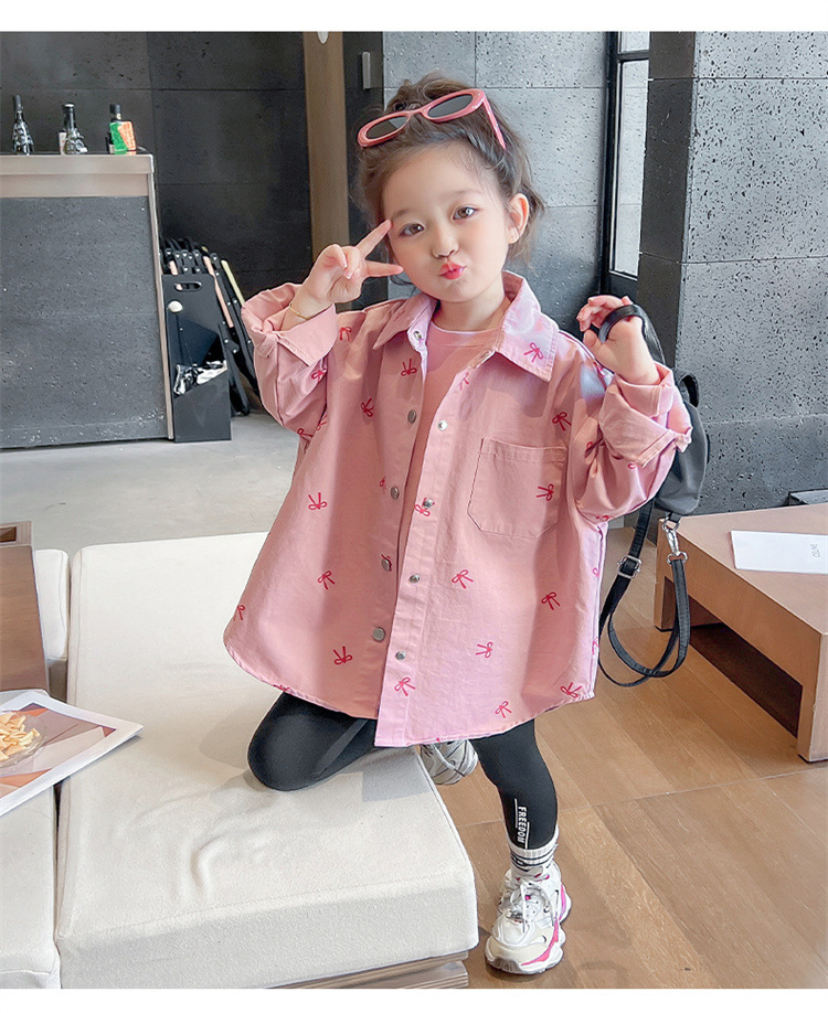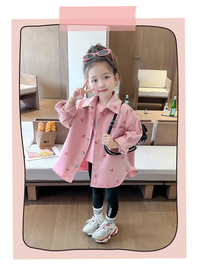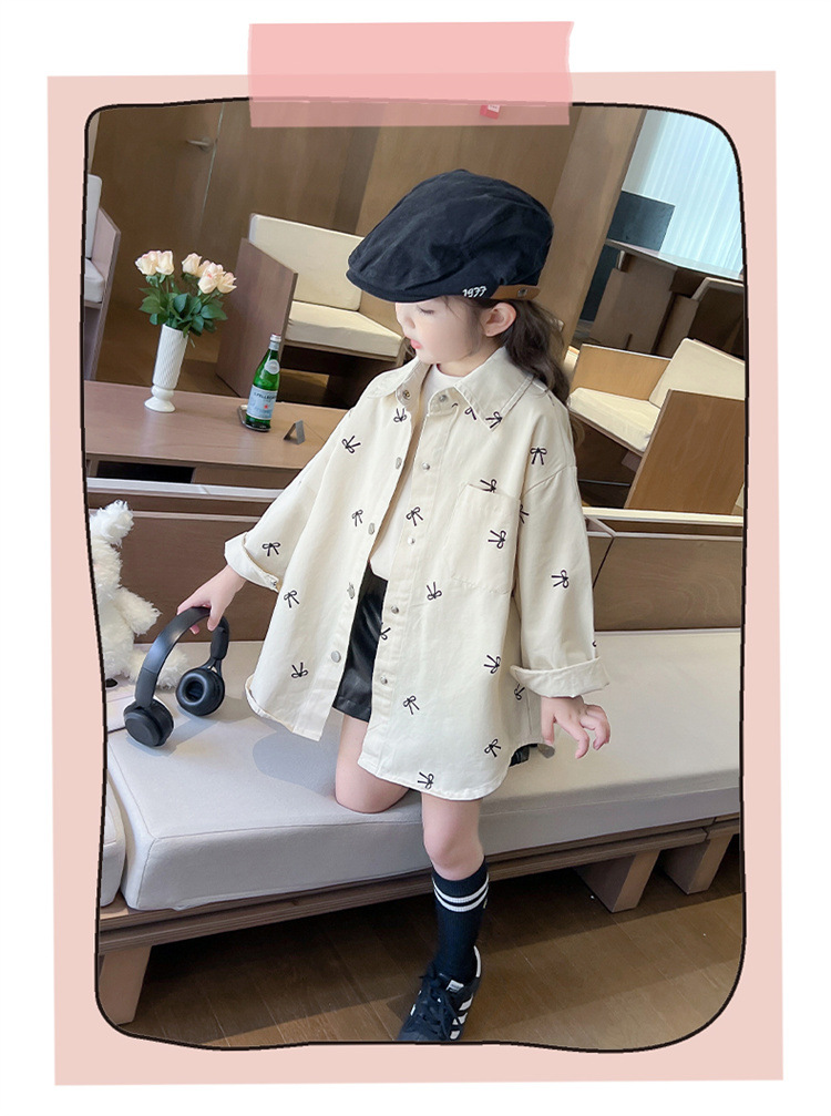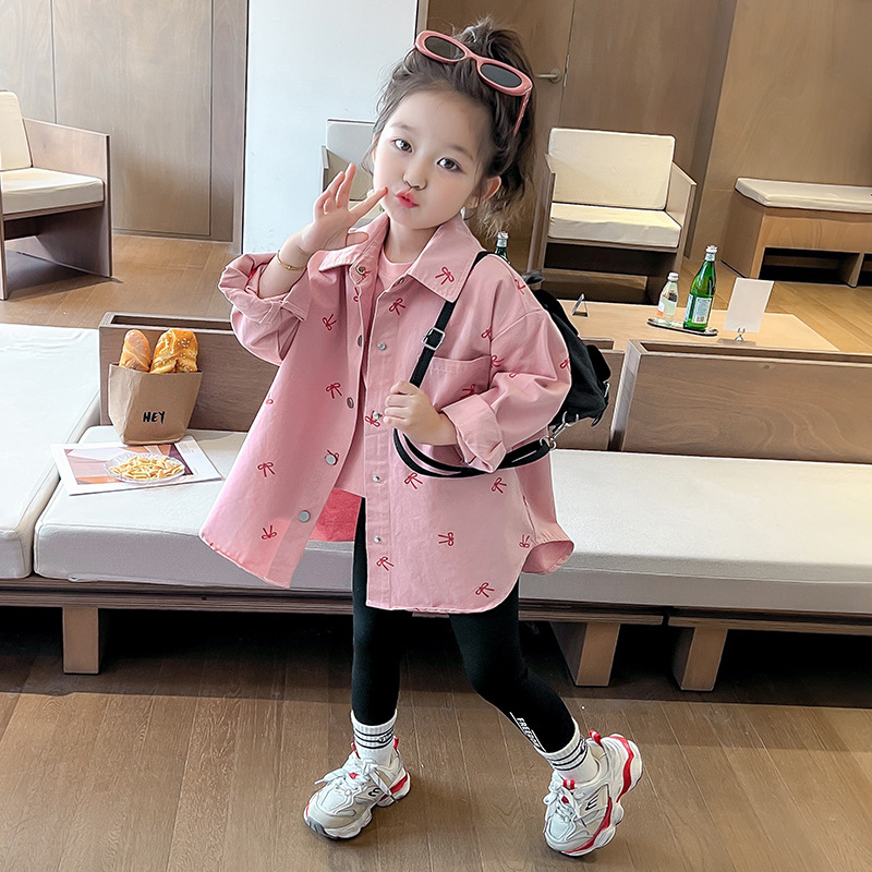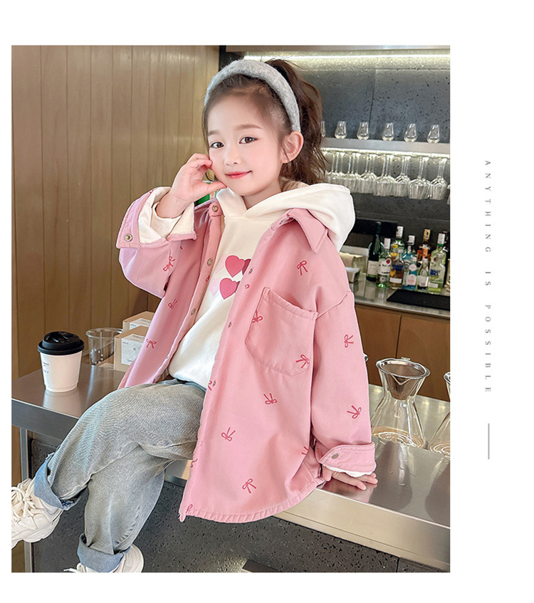 여아 리본 셔츠 재킷 봄/겨울 코트 2024 신상 아동용 스타일리쉬 여아 상의 트렌디