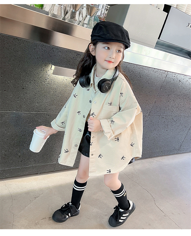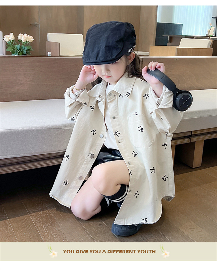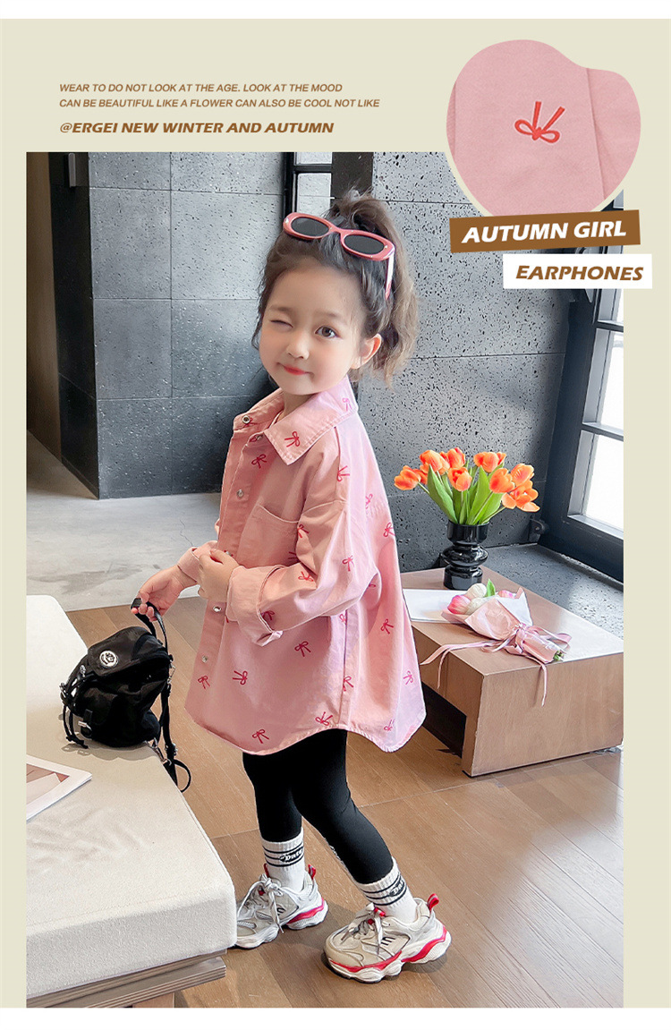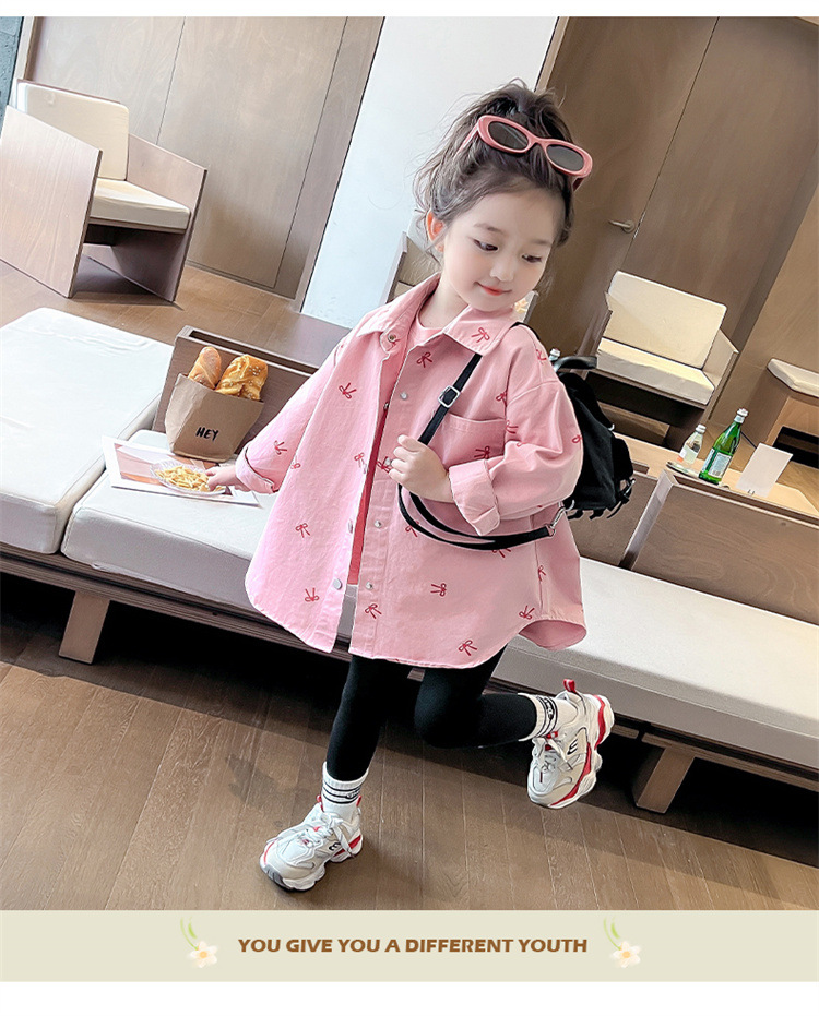 여아 리본 셔츠 재킷 봄/겨울 코트 2024 신상 아동용 스타일리쉬 여아 상의 트렌디