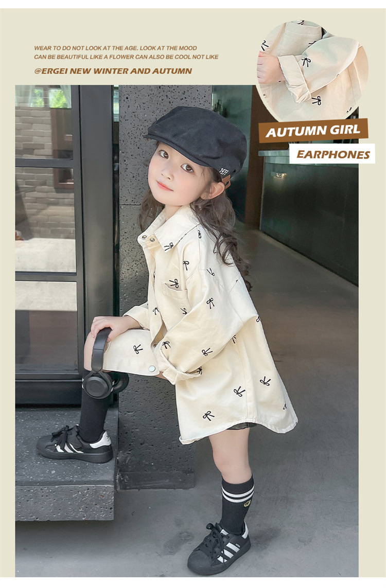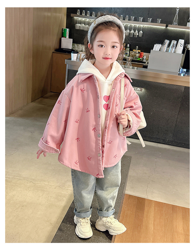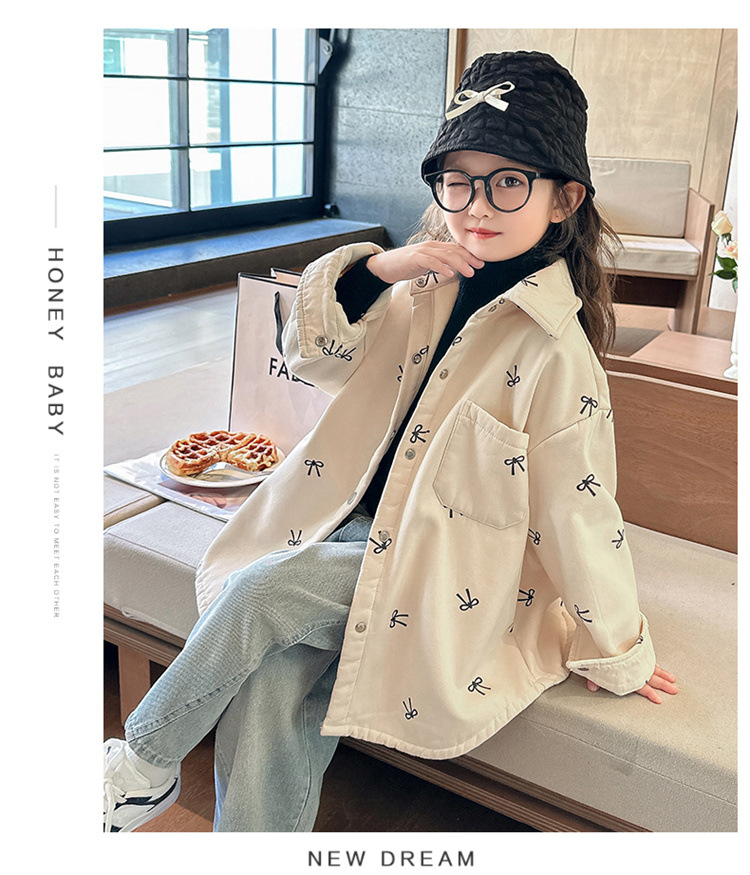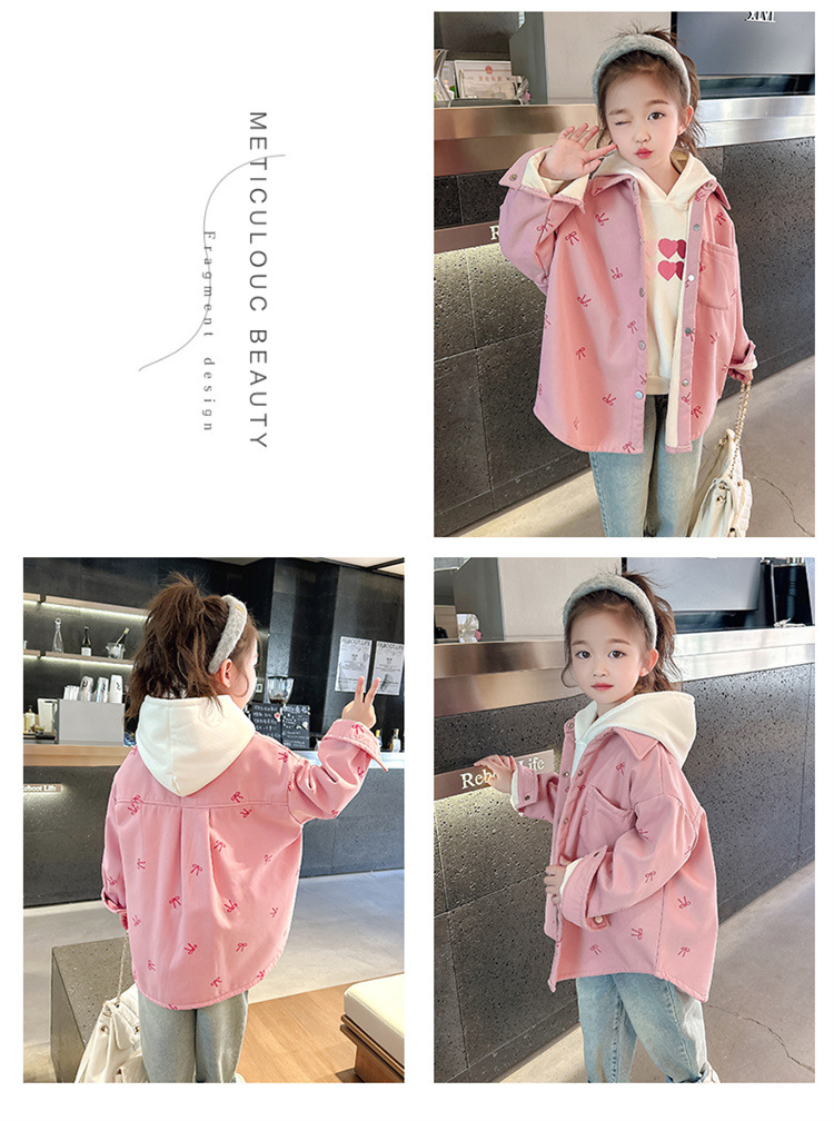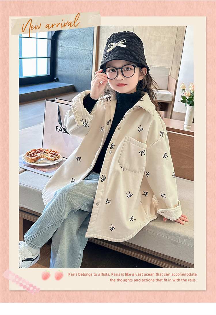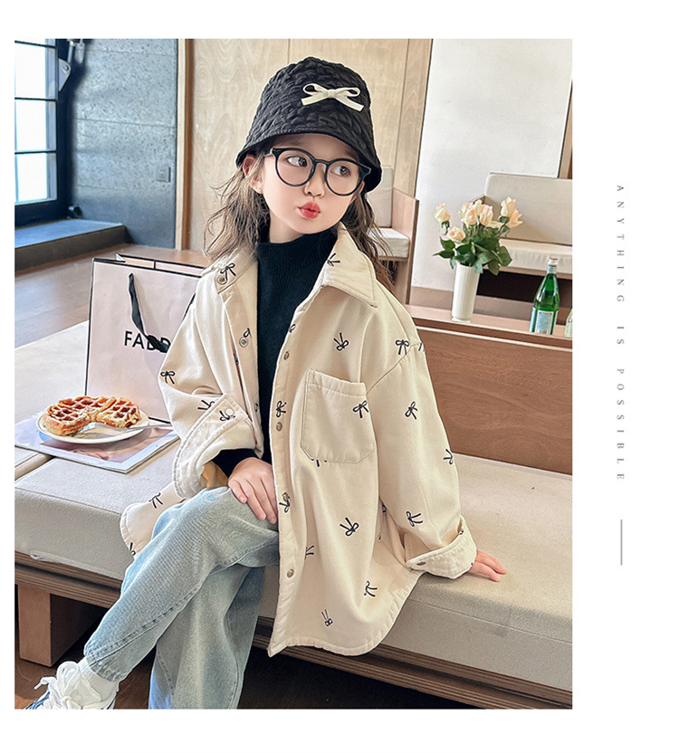 여아 리본 셔츠 재킷 봄/겨울 코트 2024 신상 아동용 스타일리쉬 여아 상의 트렌디스토어 가기