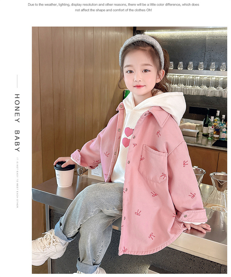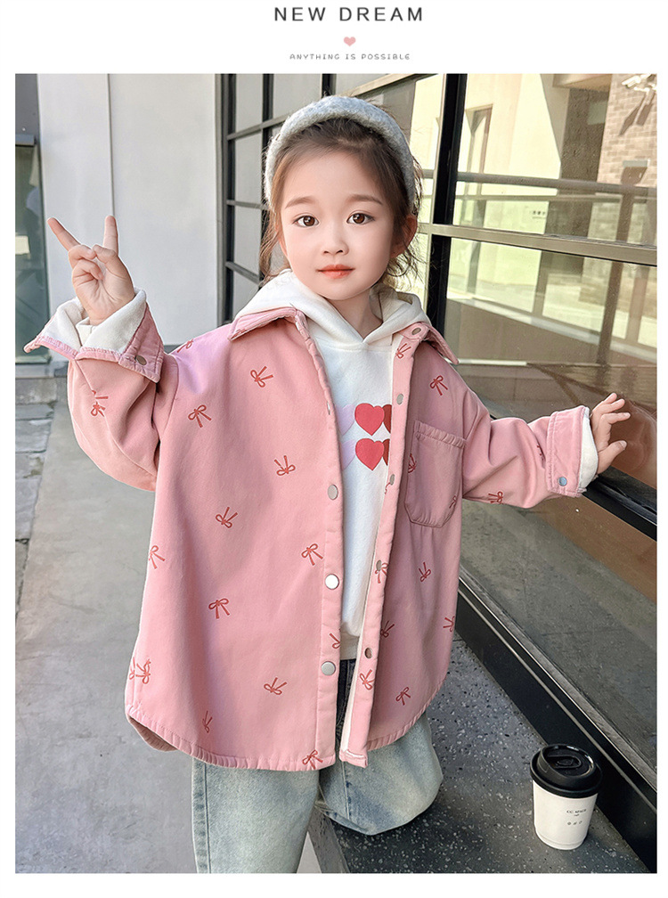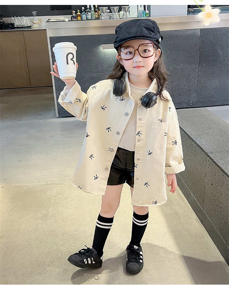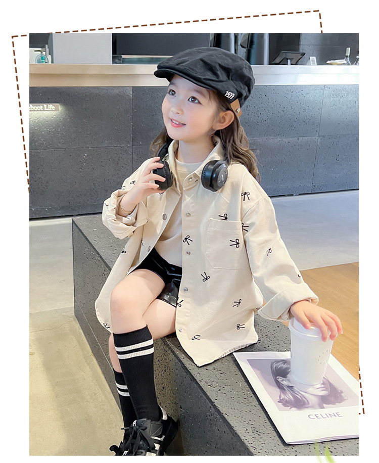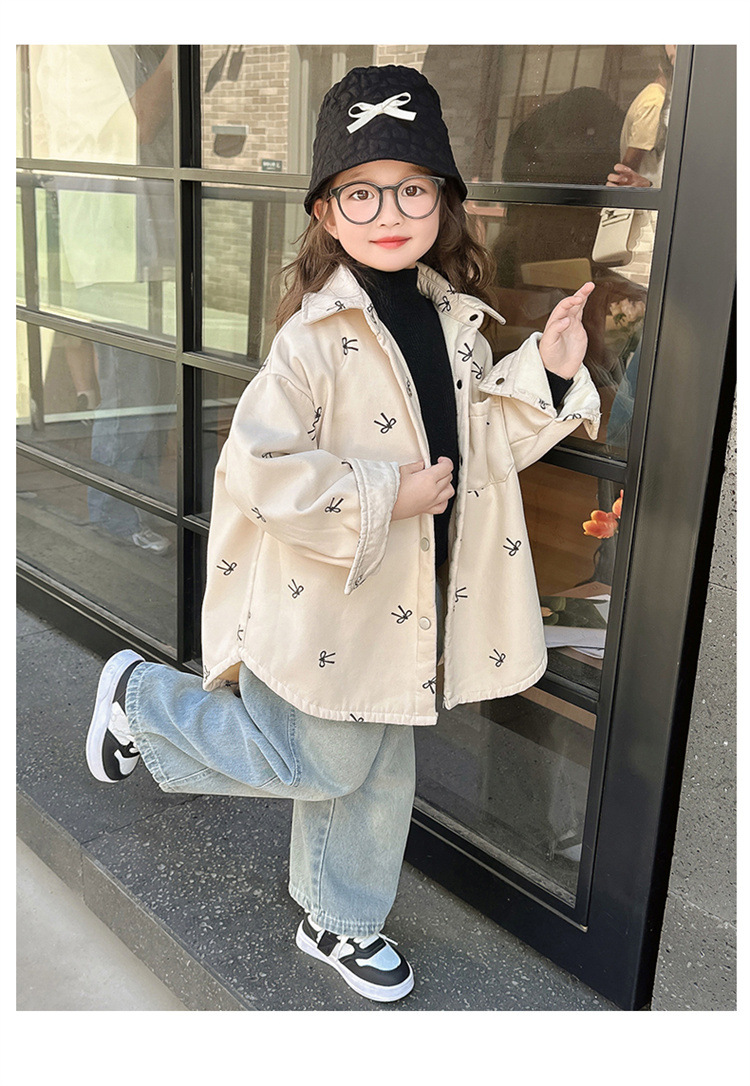여아 리본 셔츠 재킷 봄/겨울 코트 2024 신상 아동용 스타일리쉬 여아 상의 트렌디스토어 가기