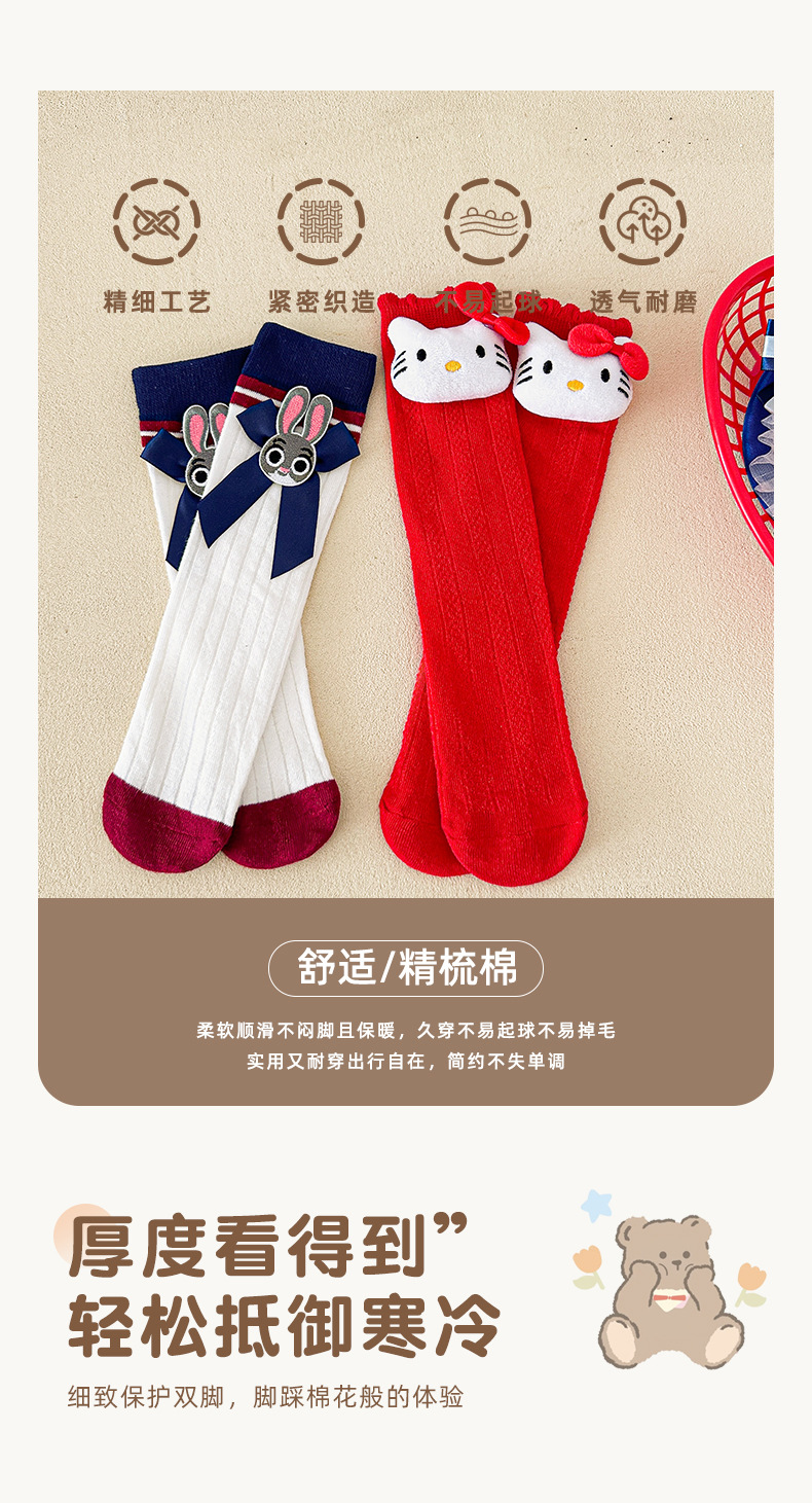 새로운 어린이 양말 대학 스타일 경찰관 주디 새끼 양말 귀여운 만화 키티 고양이 긴면 양말 어린이 양말