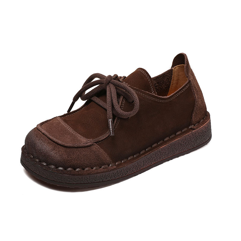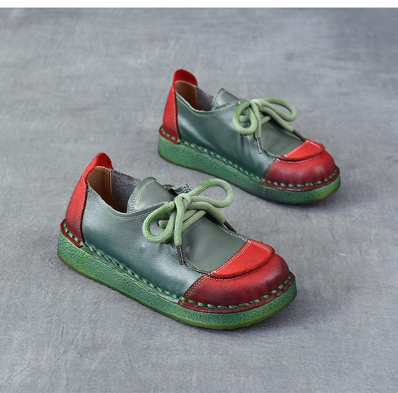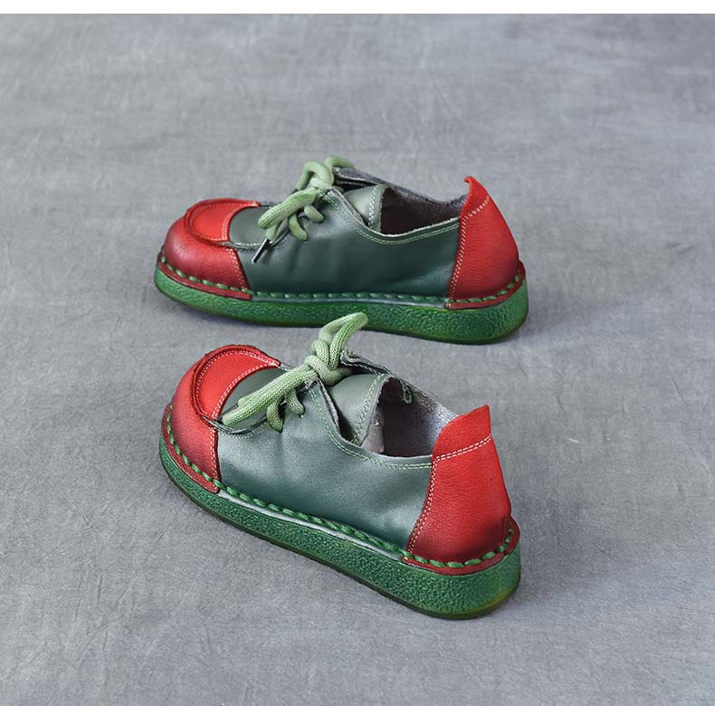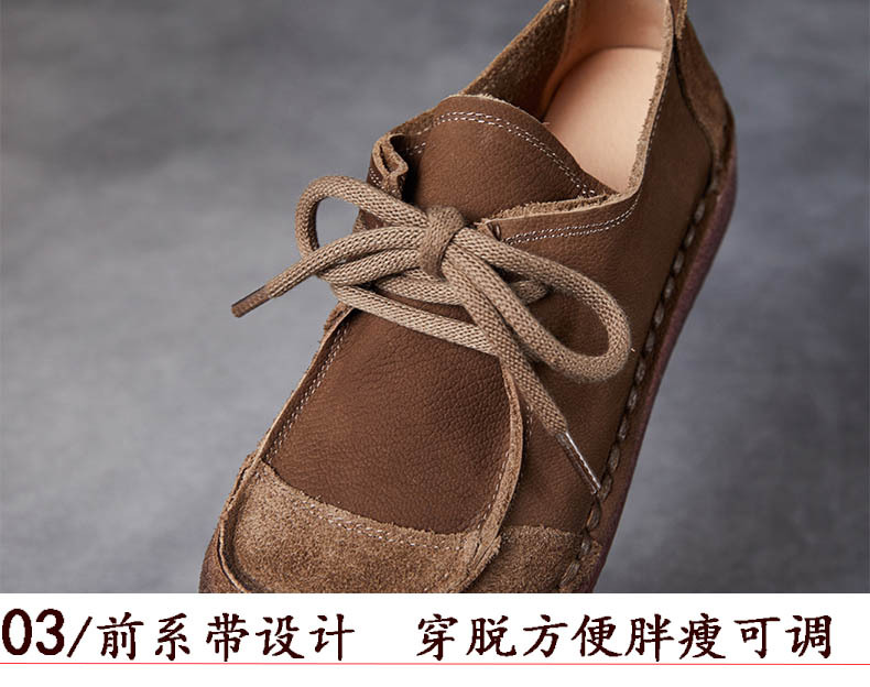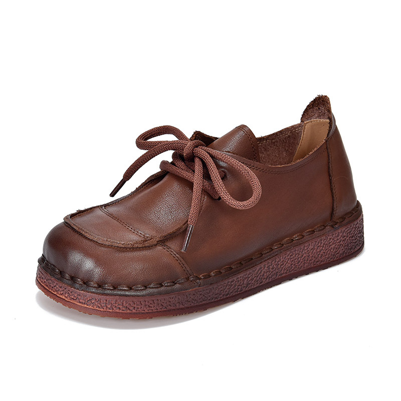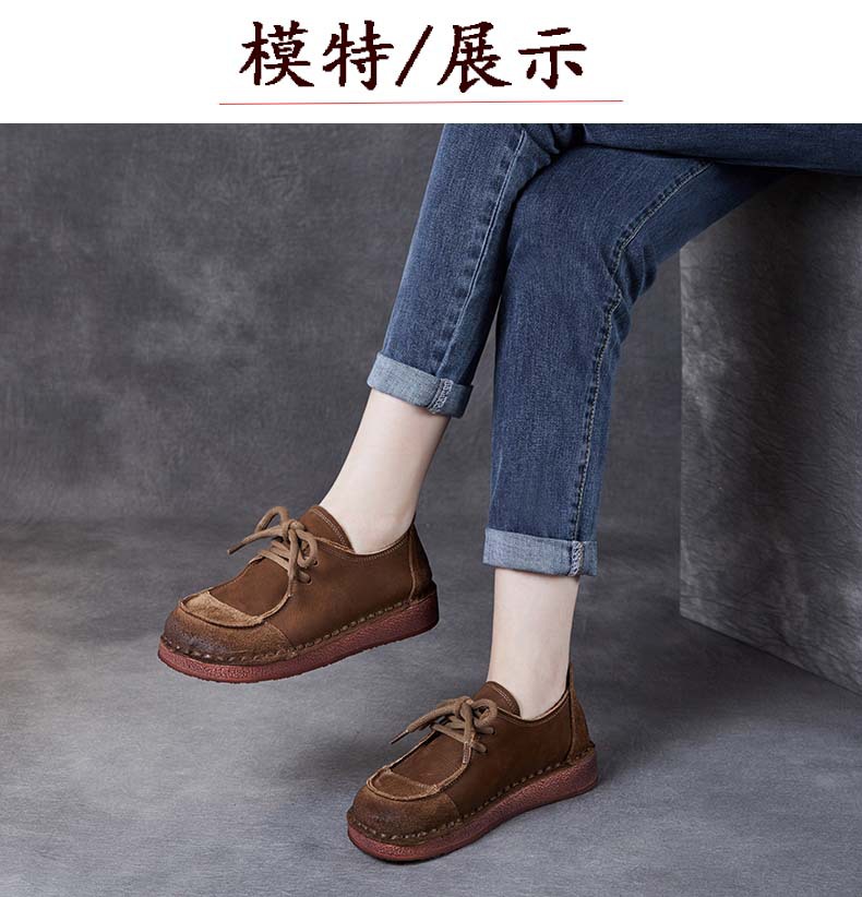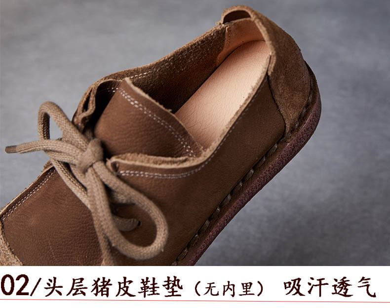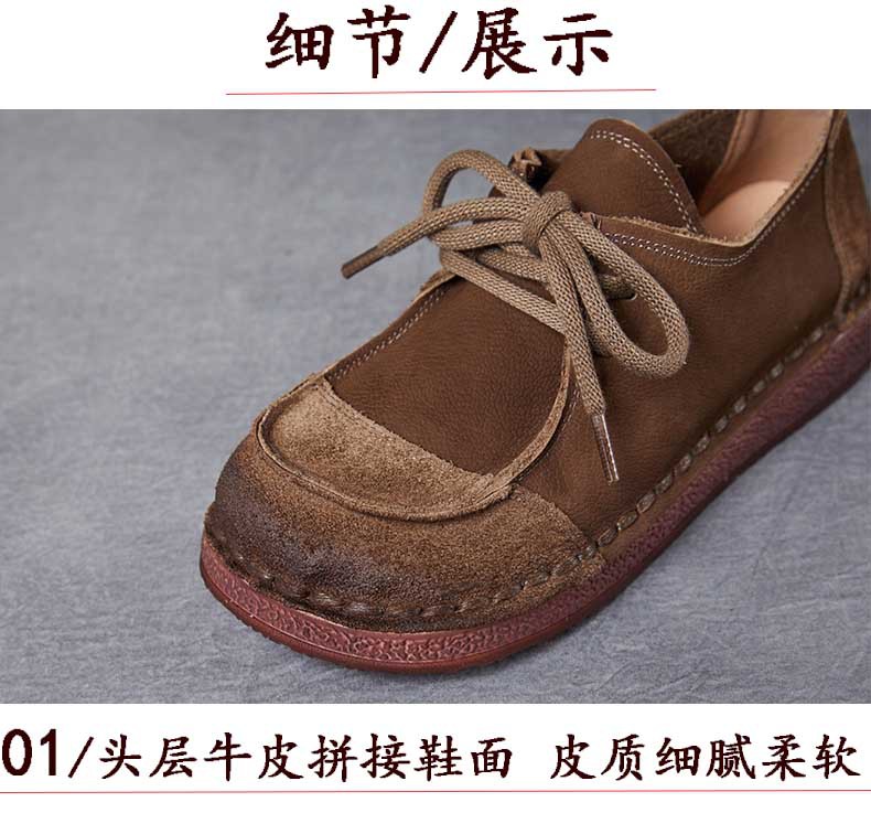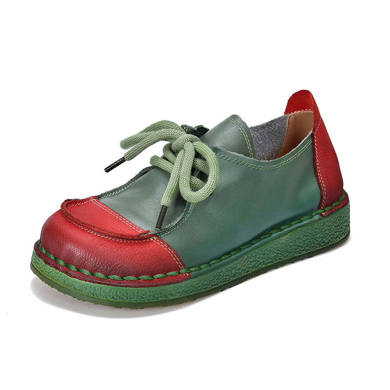 봄과 가을 새로운 패션 컬러 매칭 레트로 부드러운 밑창 여성 싱글 레이어 신발 플랫 콩 가죽 레이스 업 여성 신발스토어 가기