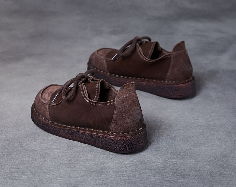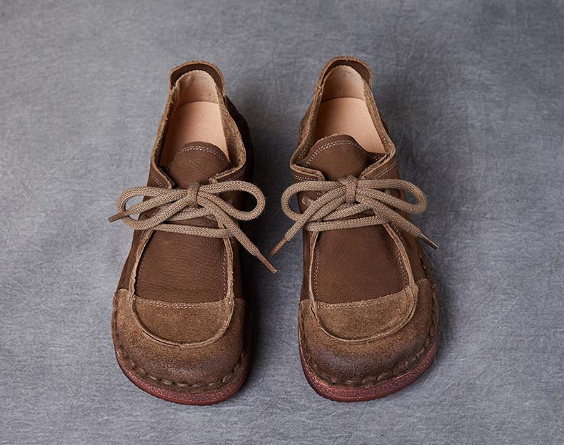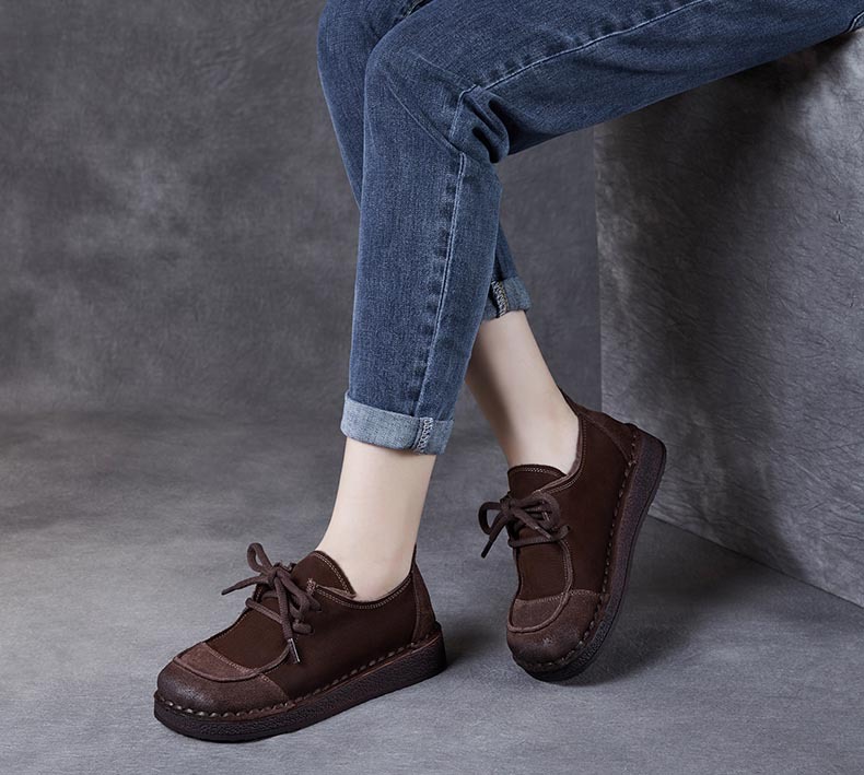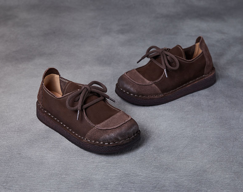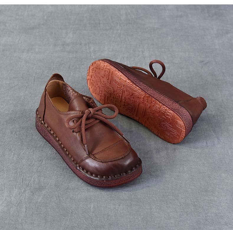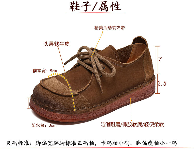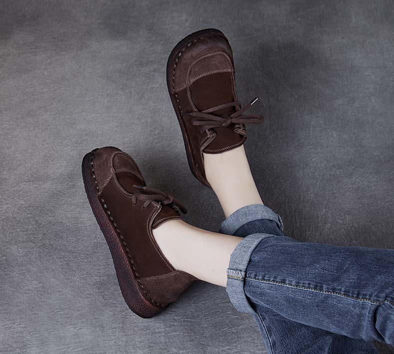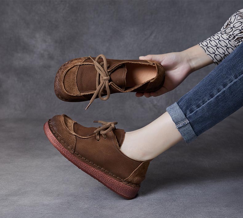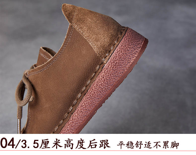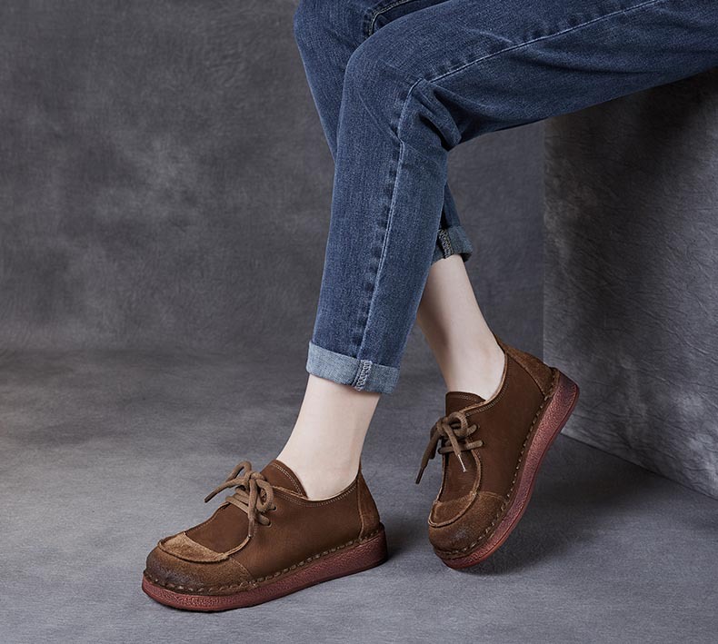 봄과 가을 새로운 패션 컬러 매칭 레트로 부드러운 밑창 여성 싱글 레이어 신발 플랫 콩 가죽 레이스 업 여성 신발스토어 가기