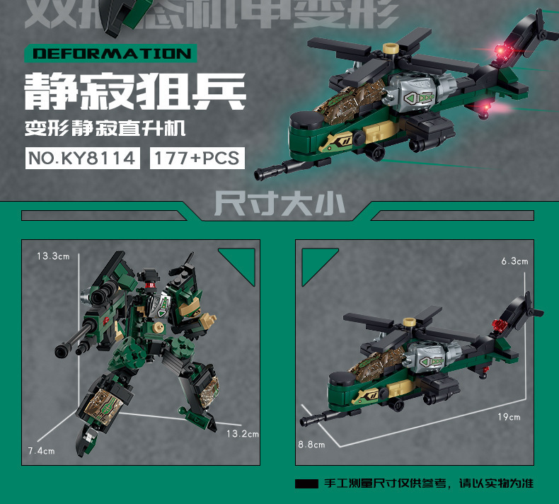 Kaiji 8114 이중 모양 변형 메카 로봇 퍼즐 조립 빌딩 블록 세트 소년 장난감 국경 간 도매스토어 가기