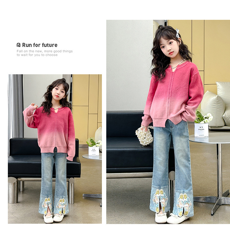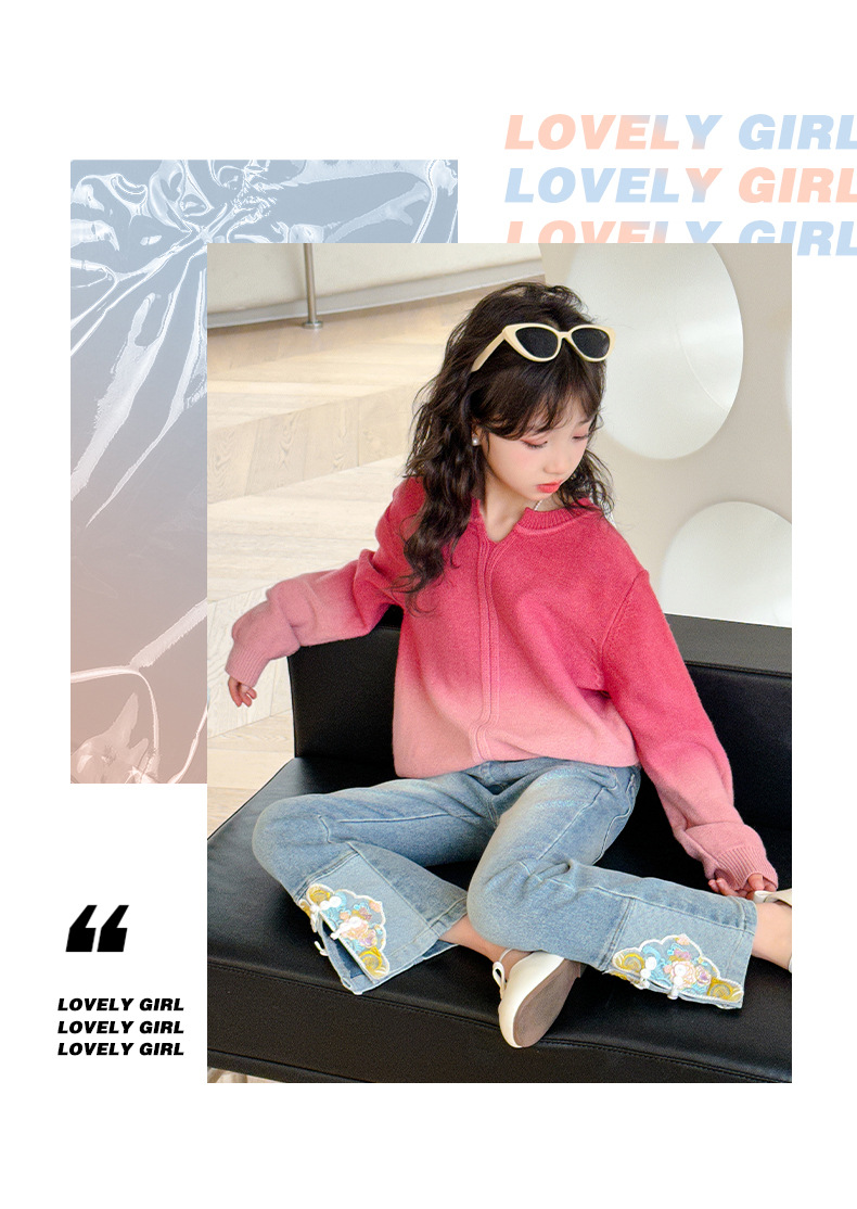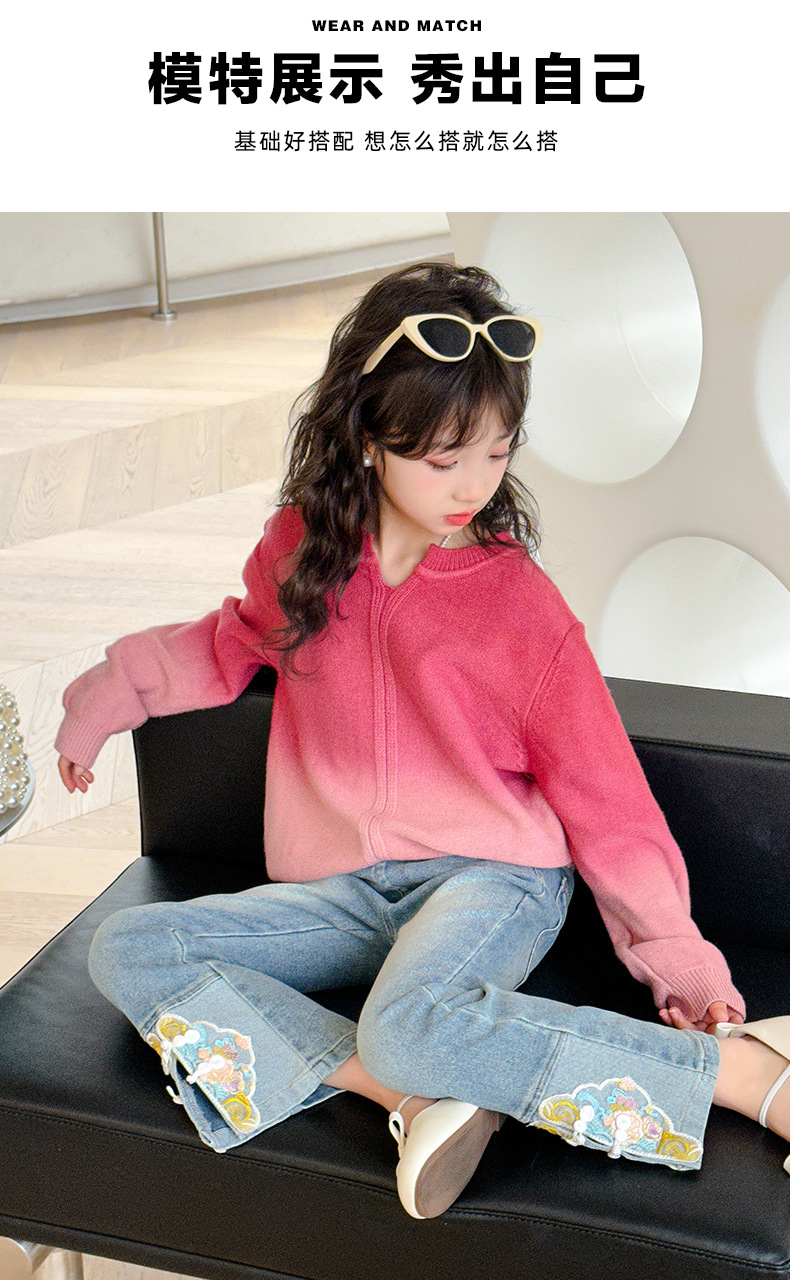 소녀 스웨터 가을 새로운 한국 스타일 인터넷 축하 핫 스타일 점진적 터틀넥 니트 스웨터 중 및 빅 어린이 부모-어린이 탑 가을 착용