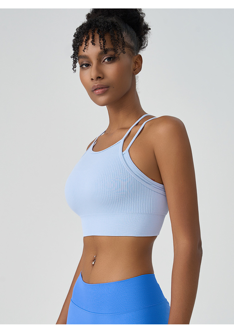 와튼 가짜 투피스 스포츠 속옷 얇은 어깨 끈 통합 컵 안티 라이트 입고 Y 자형 할로우 아웃 뷰티 백 피트니스 브라