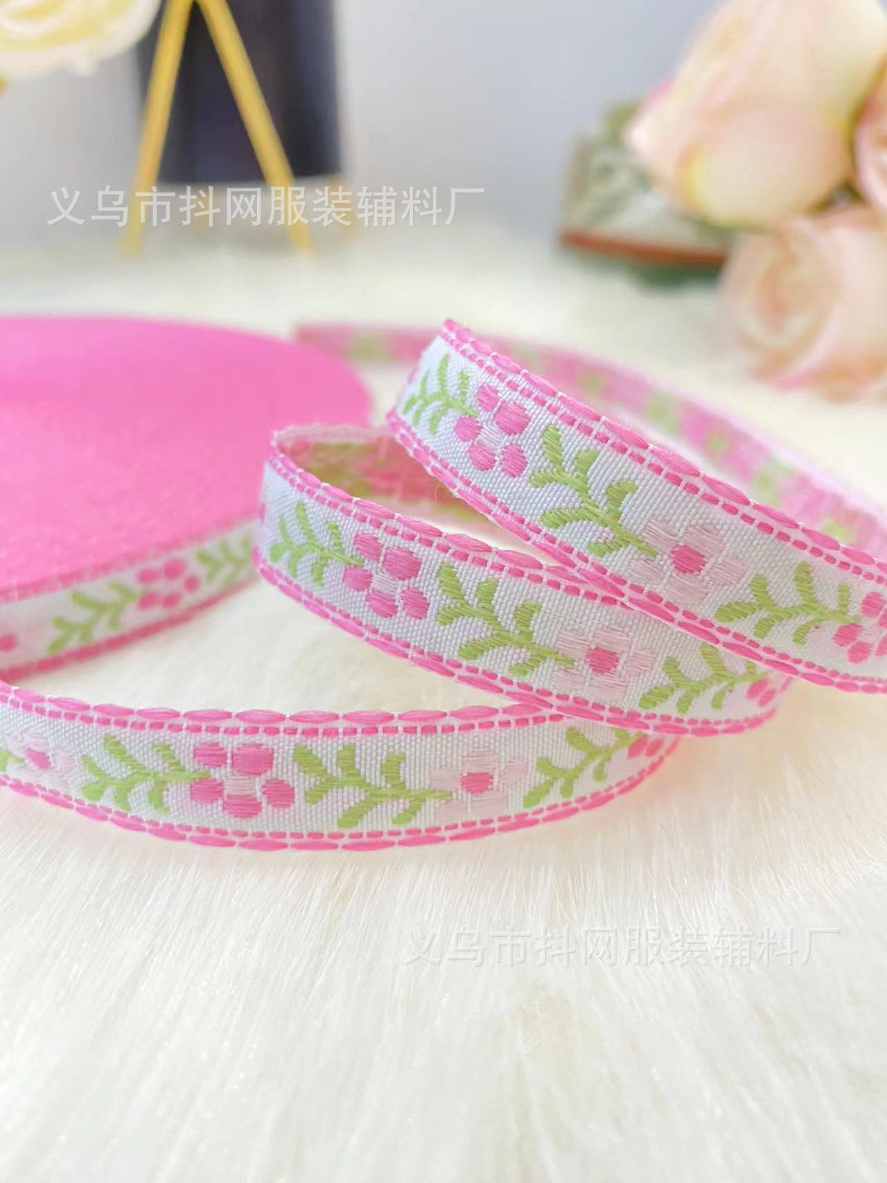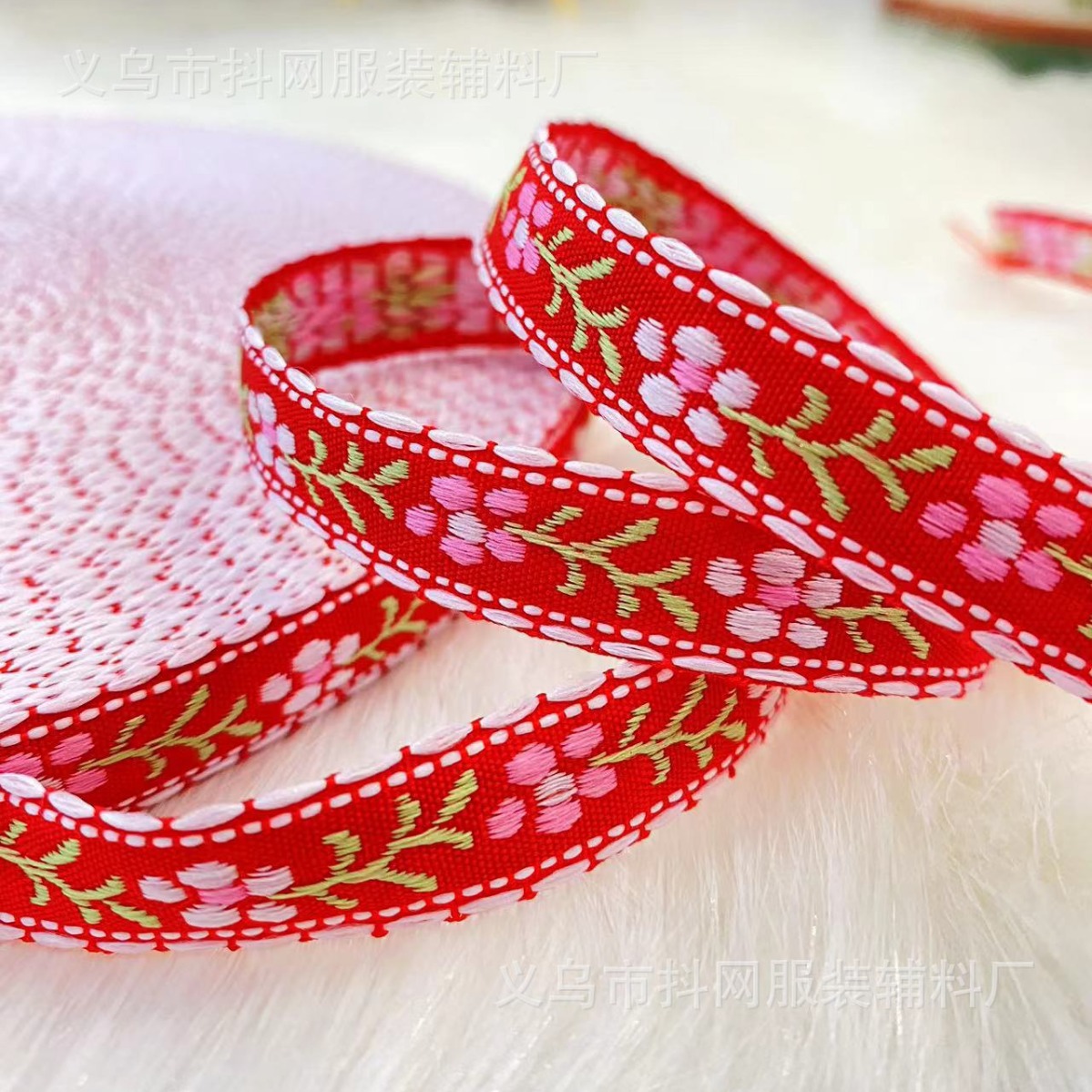 1.2cm 신선한 자카드 자수 수제 DIY 꽃무늬 나일론 리본 축제 민족 의상 액세서리 도매