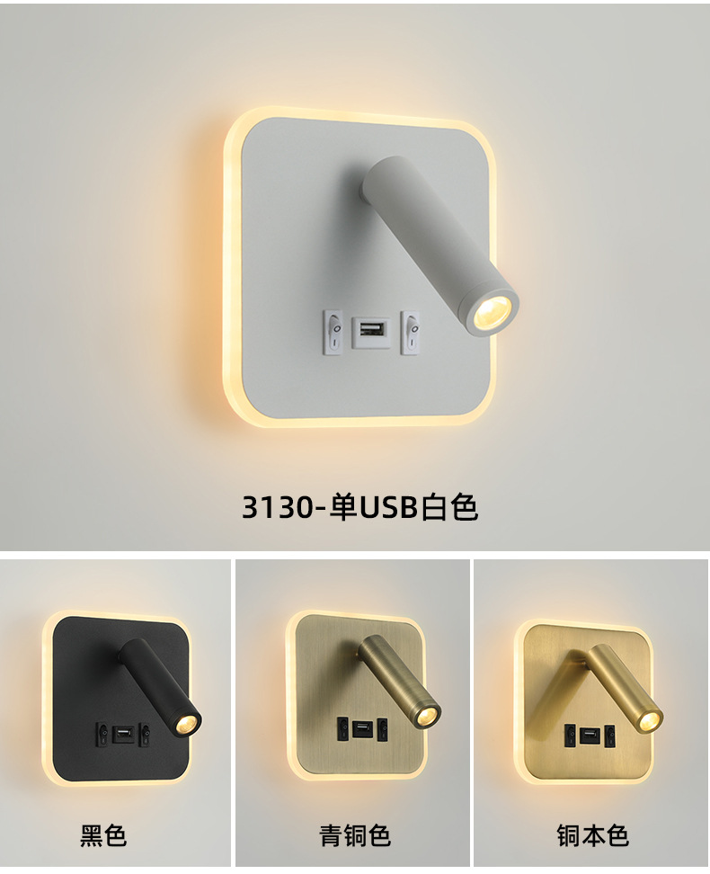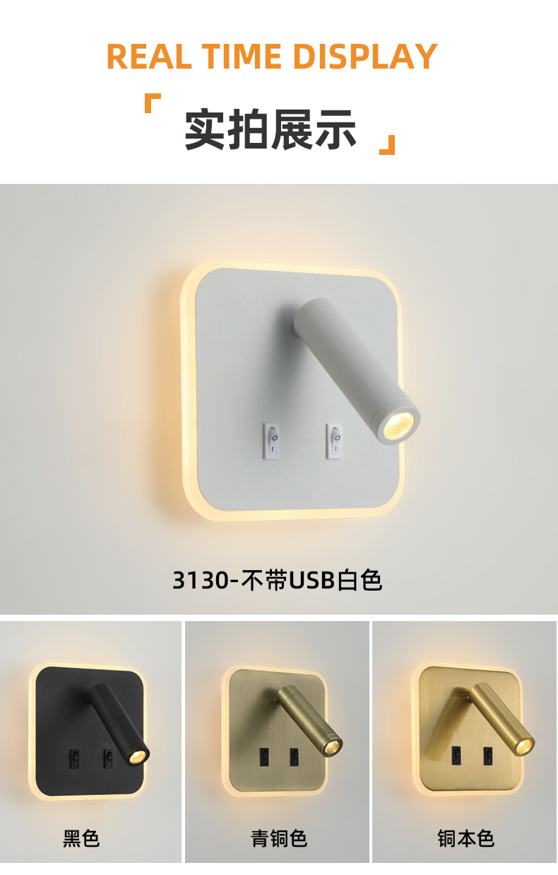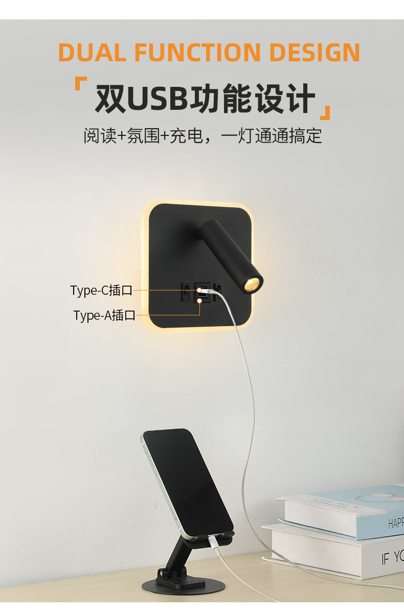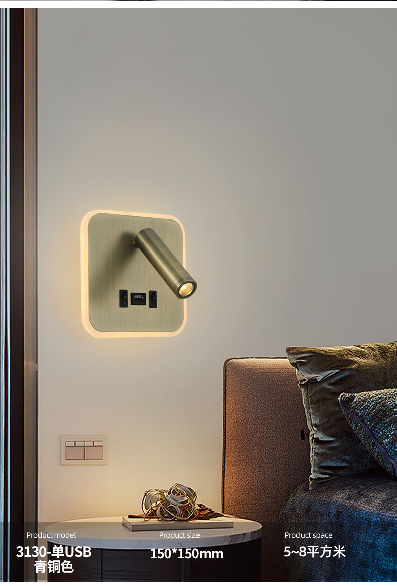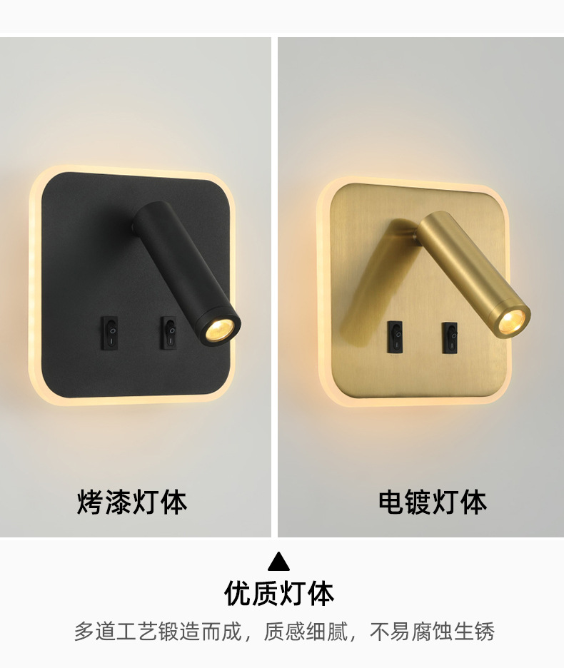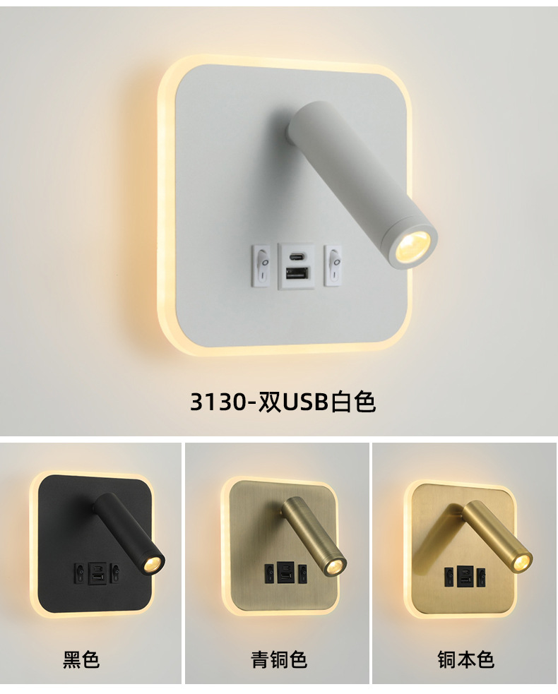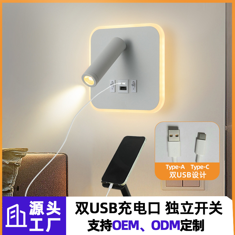 크로스보더 벽 램프 미니멀리스트 호텔 침대 옆 독서 램프 Type-c Type-AUSB 충전식 침실 벽 램프(스위치 포함)스토어 가기