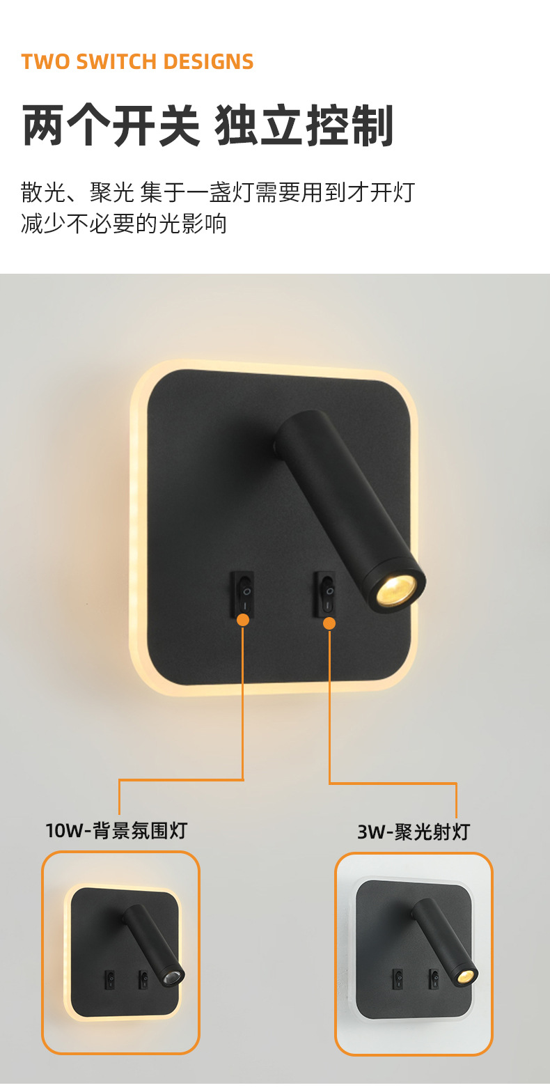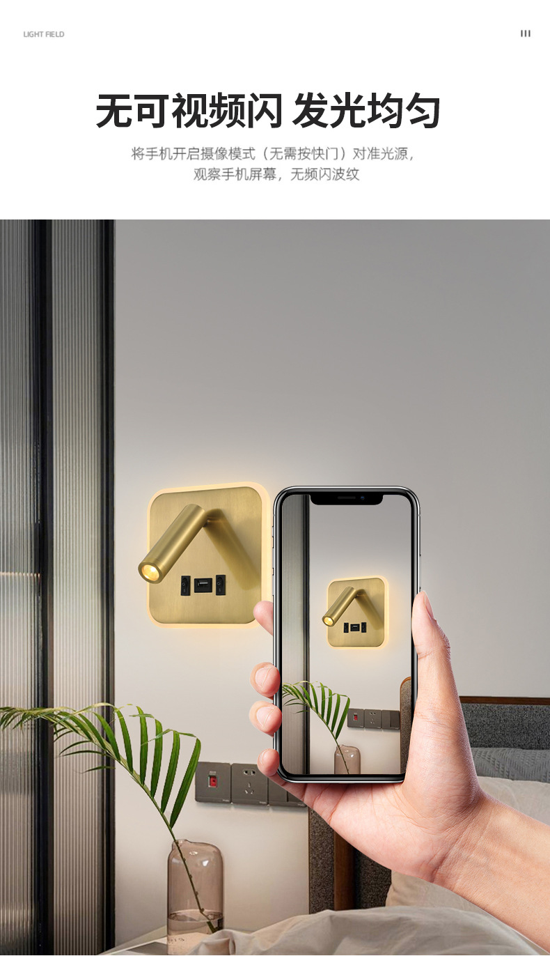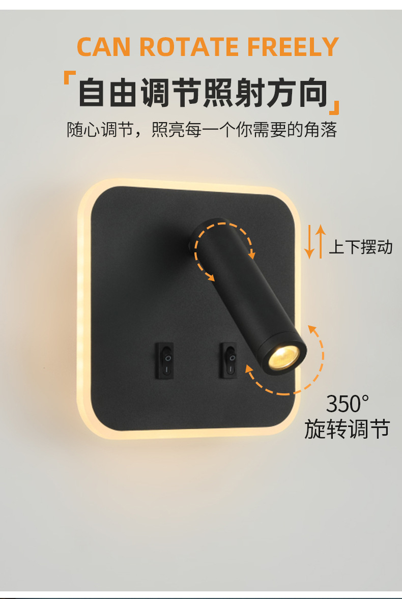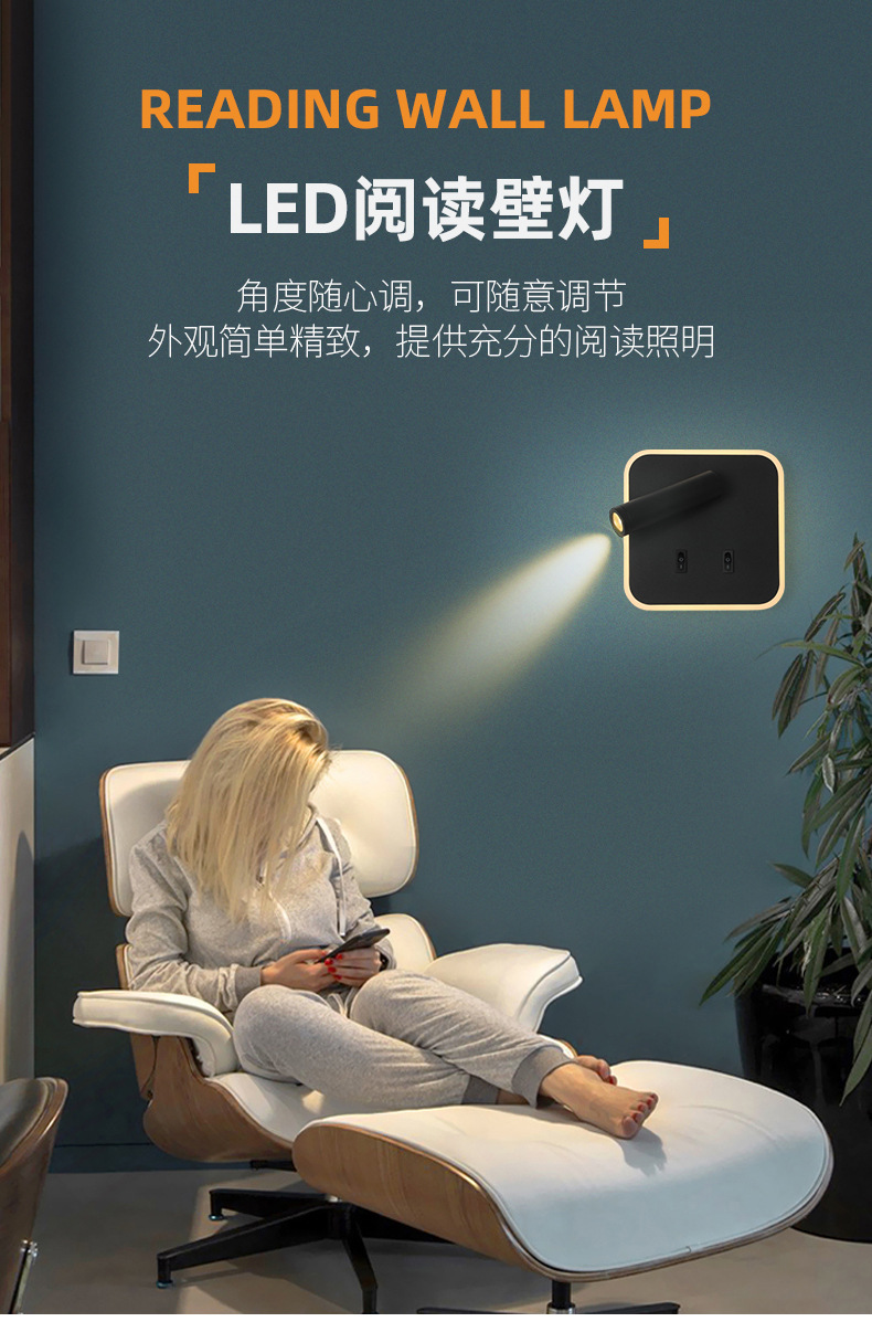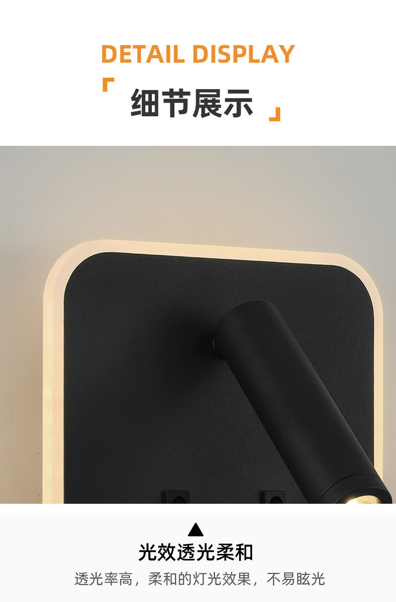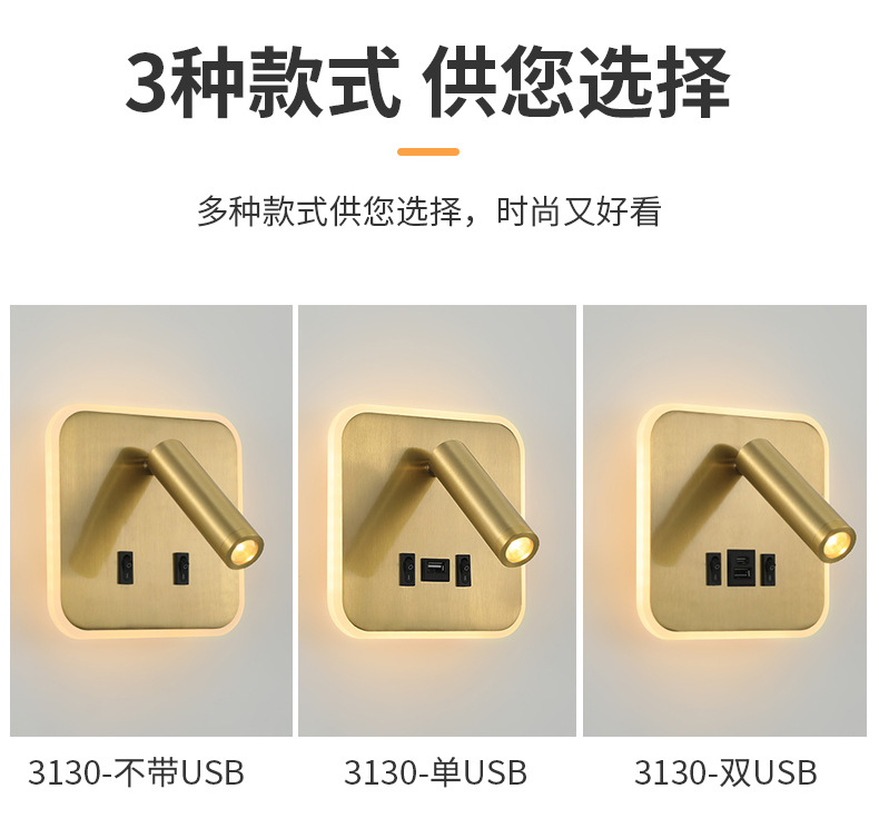 크로스보더 벽 램프 미니멀리스트 호텔 침대 옆 독서 램프 Type-c Type-AUSB 충전식 침실 벽 램프(스위치 포함)스토어 가기