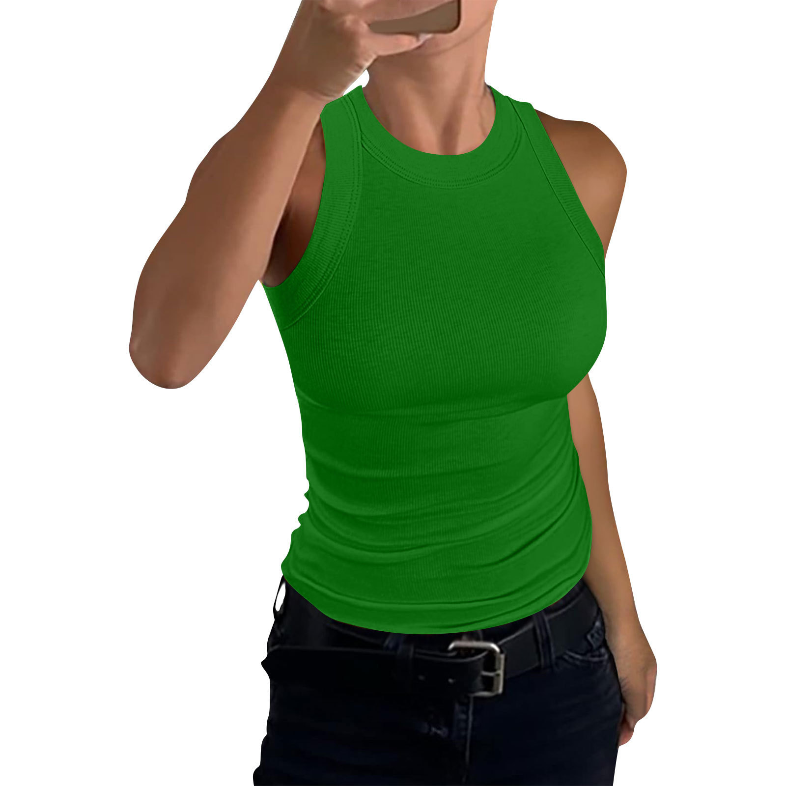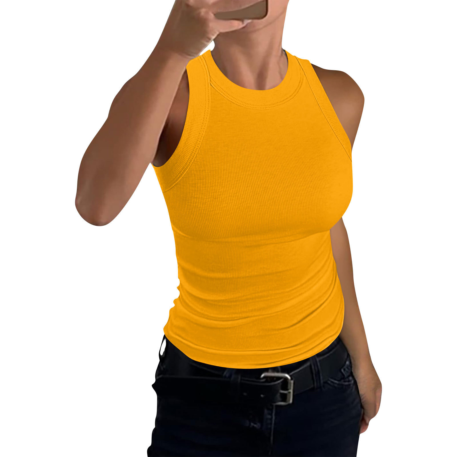 2024 유럽과 미국의 국경 간 아마존 독립 역 여름 여성 갈비뼈 조끼 크루 넥 슬림 핏 I 자형 여성 조끼스토어 가기