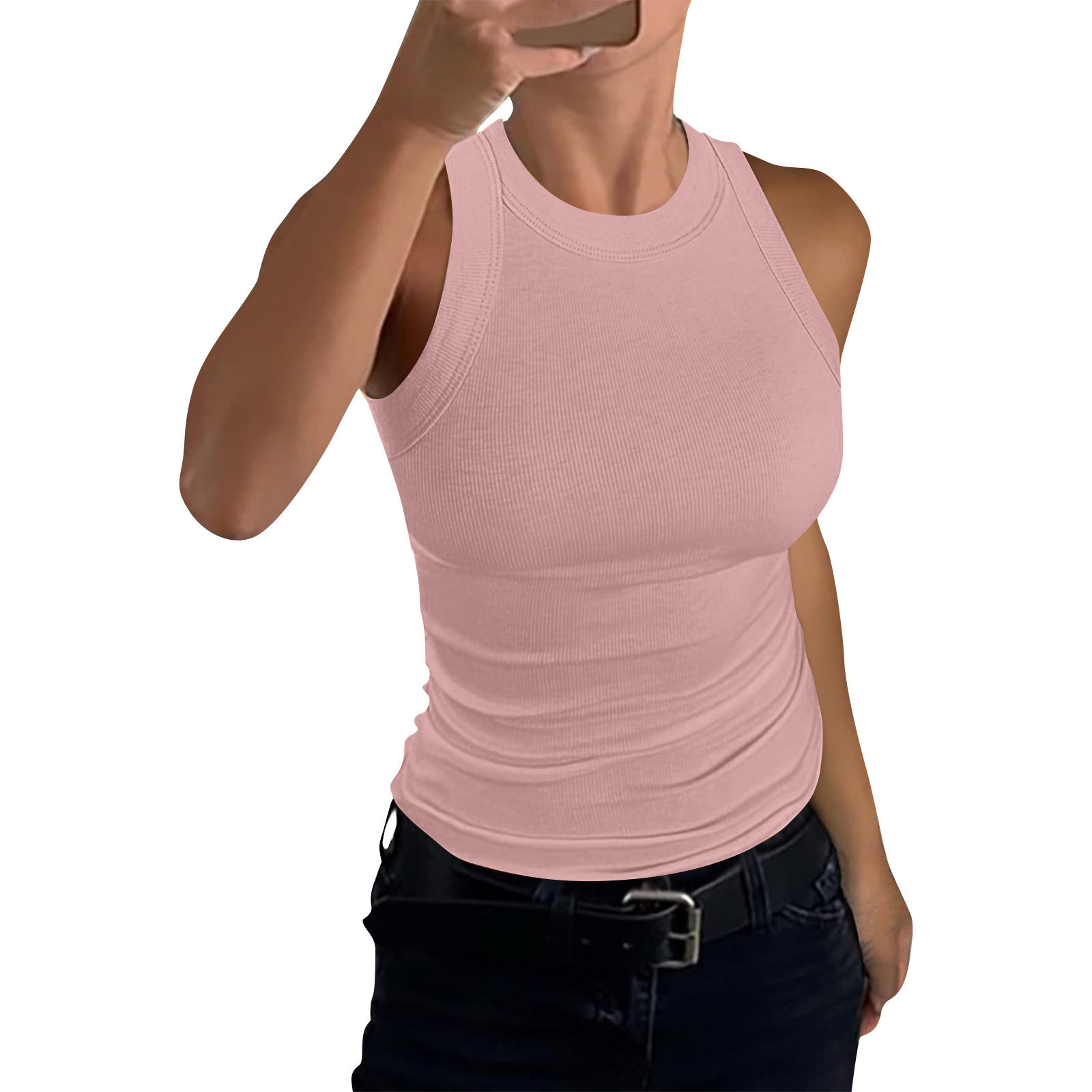 2024 유럽과 미국의 국경 간 아마존 독립 역 여름 여성 갈비뼈 조끼 크루 넥 슬림 핏 I 자형 여성 조끼