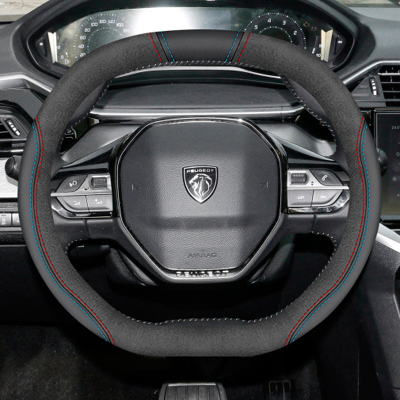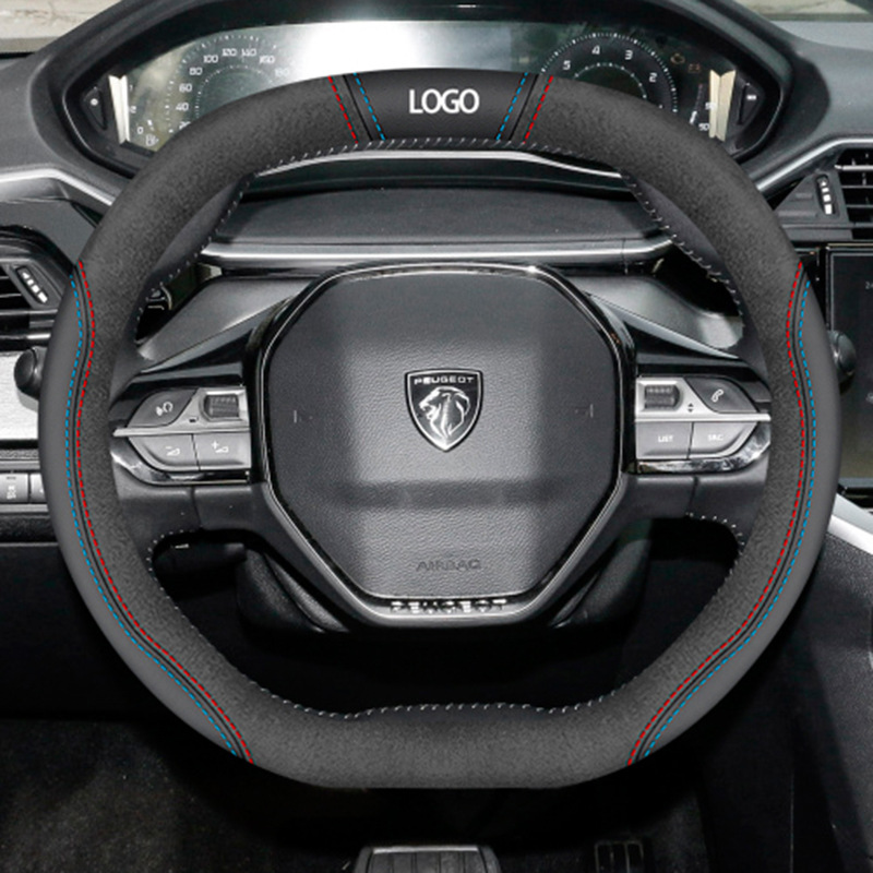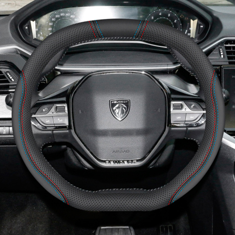 D 푸조 4008 5008 스티어링 휠 커버 가죽 사계절 나파 가죽 핸들 커버 로고 인테리어 수정 특별스토어 가기