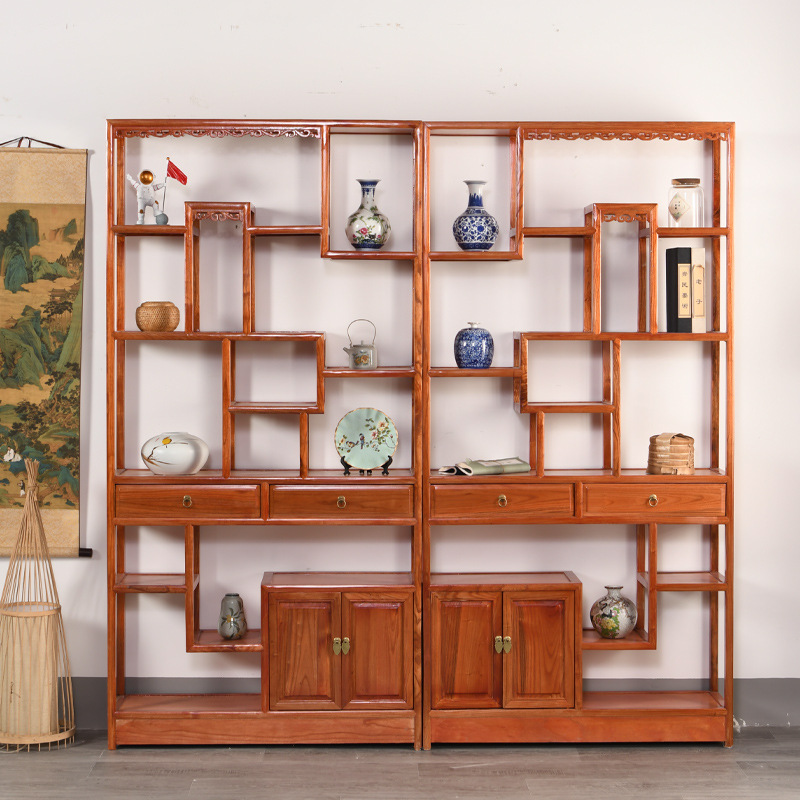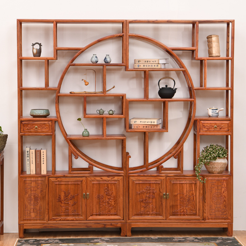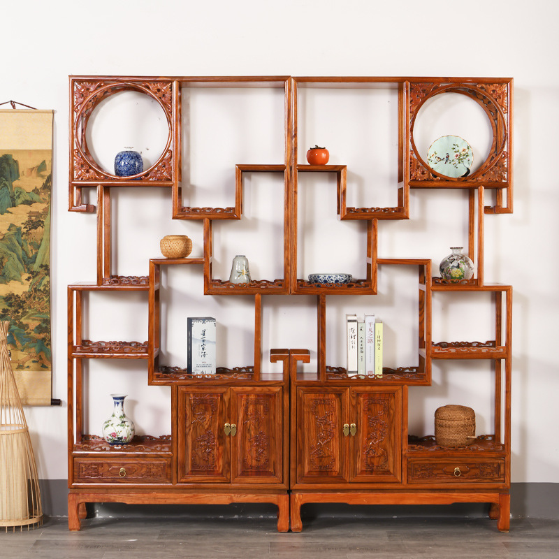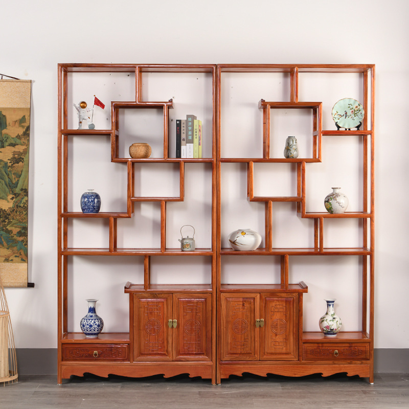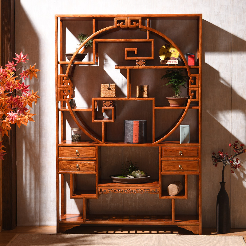 골동품 랙 풀 솔리드 우드 Duobao Pavilion 중국 파티션 새로운 중국 골동품 차 입구 랙 거실 선 입구 캐비닛