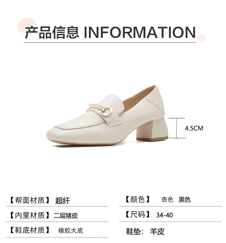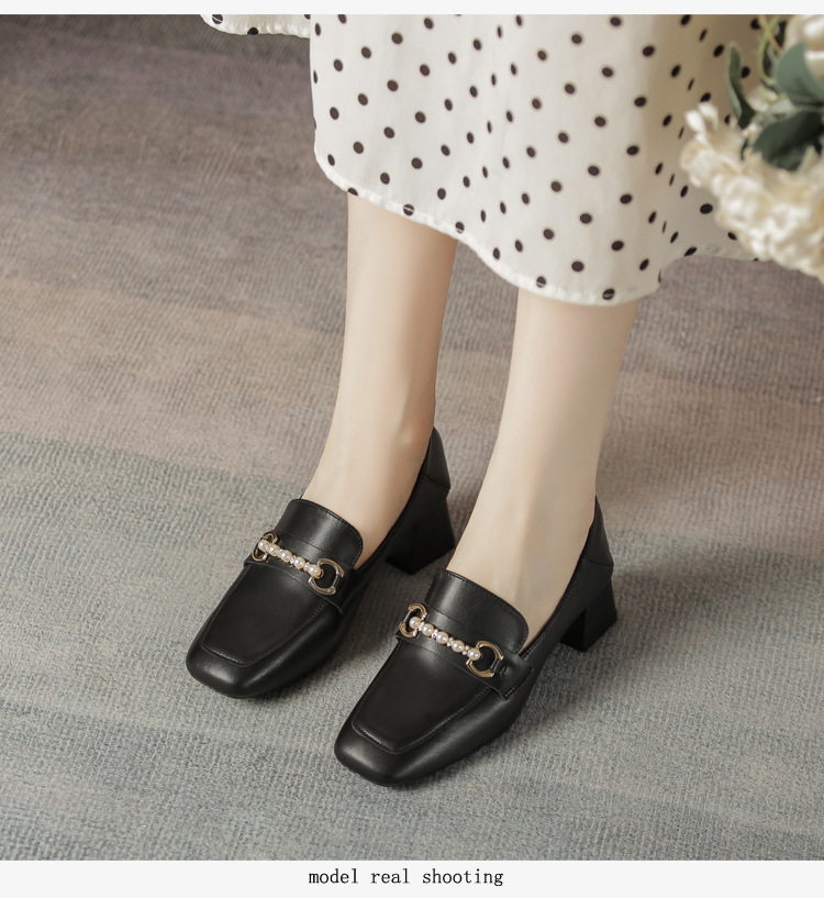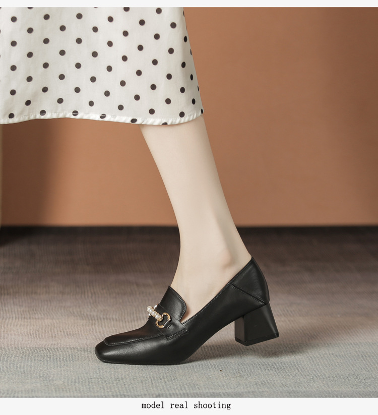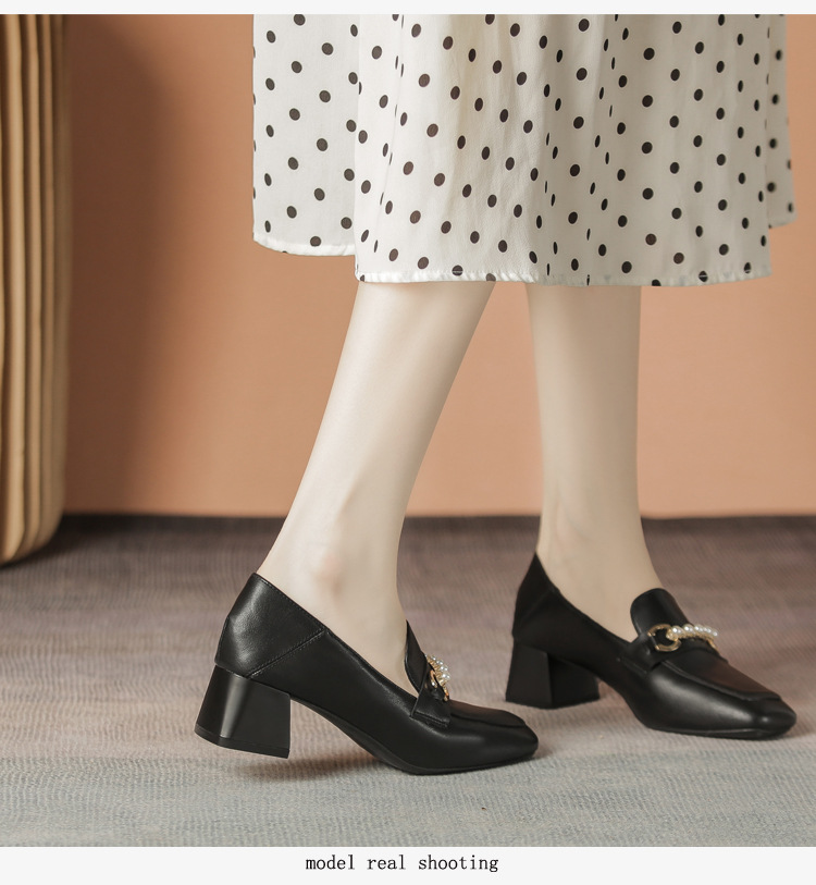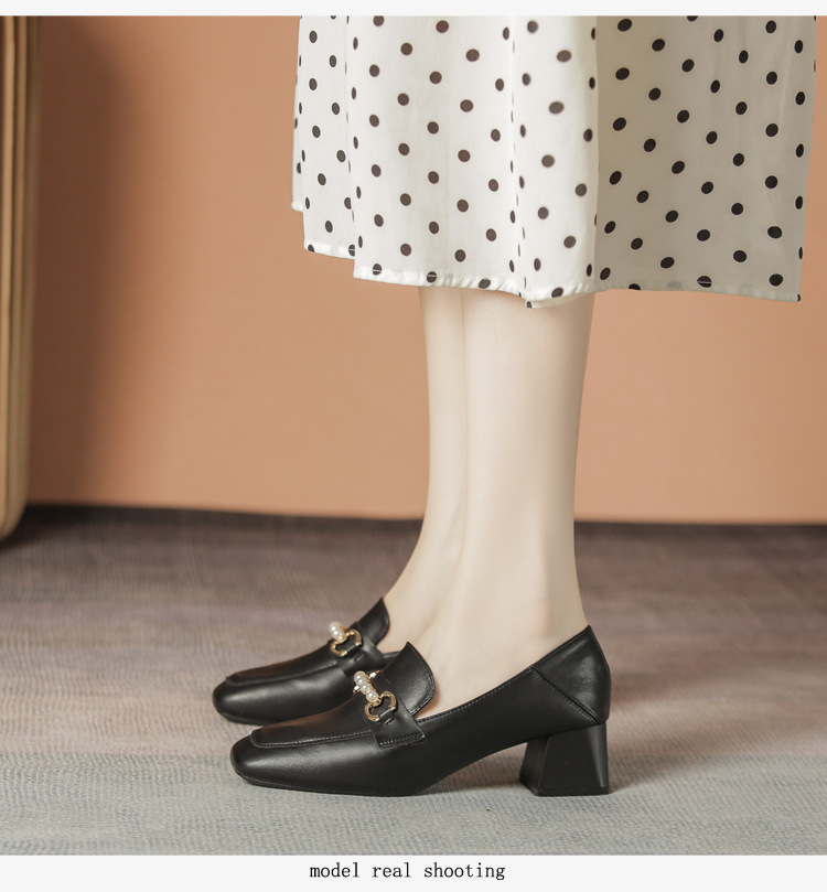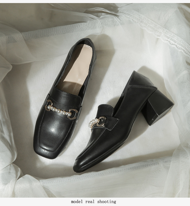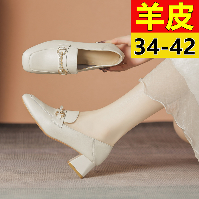 양가죽 정품 가죽 봄과 가을 새로운 청키 힐 영국 스타일 여성 가죽 신발 스퀘어 헤드 하이힐 싱글 신발 여성 로퍼 플러스 사이즈 4142스토어 가기