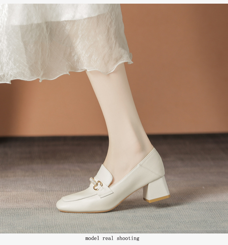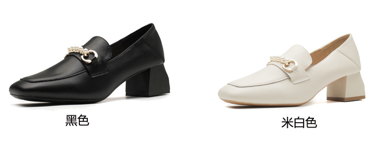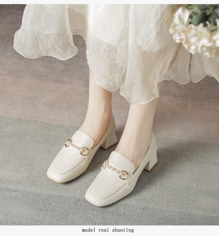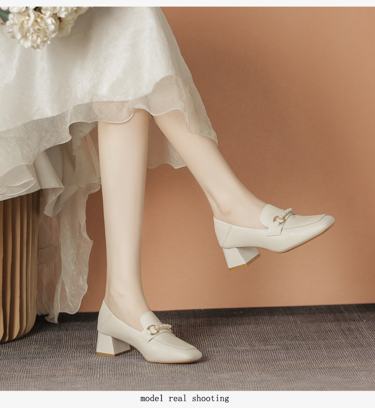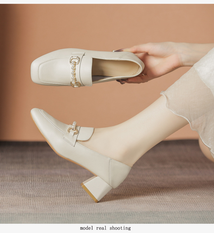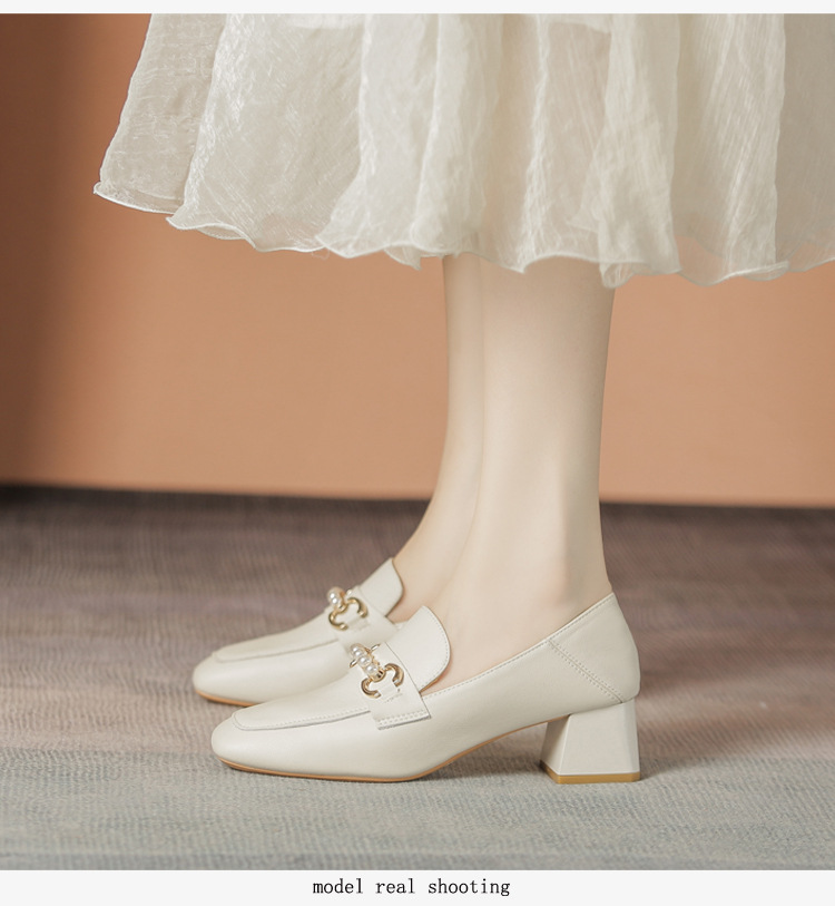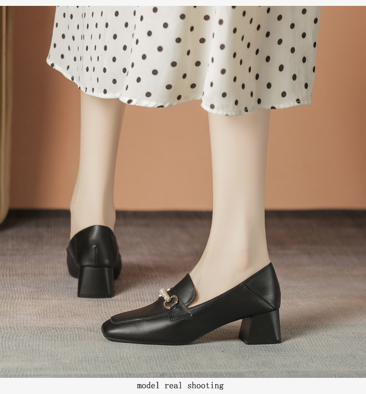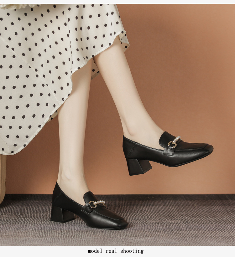 양가죽 정품 가죽 봄과 가을 새로운 청키 힐 영국 스타일 여성 가죽 신발 스퀘어 헤드 하이힐 싱글 신발 여성 로퍼 플러스 사이즈 4142스토어 가기
