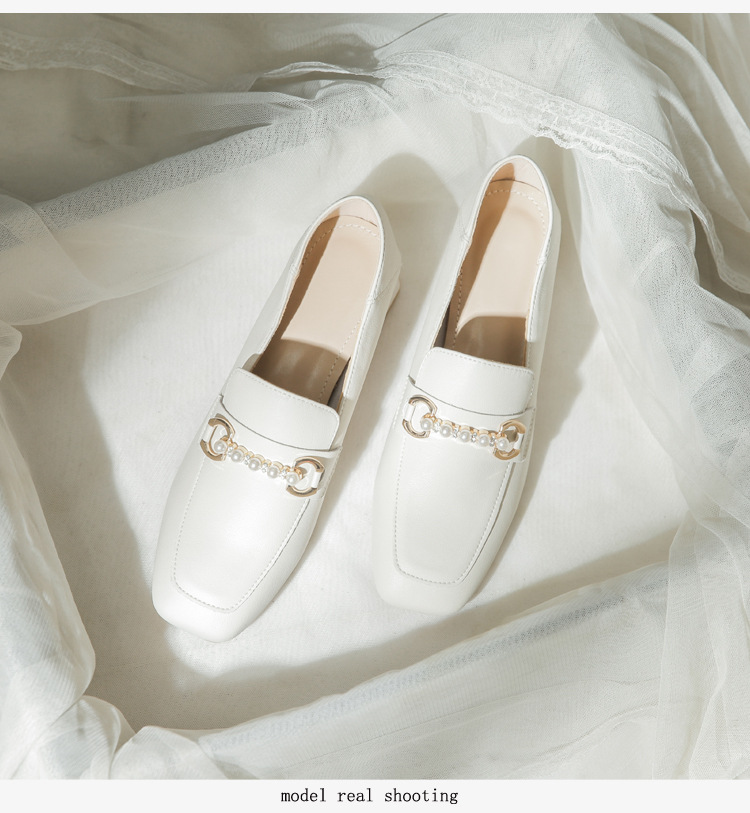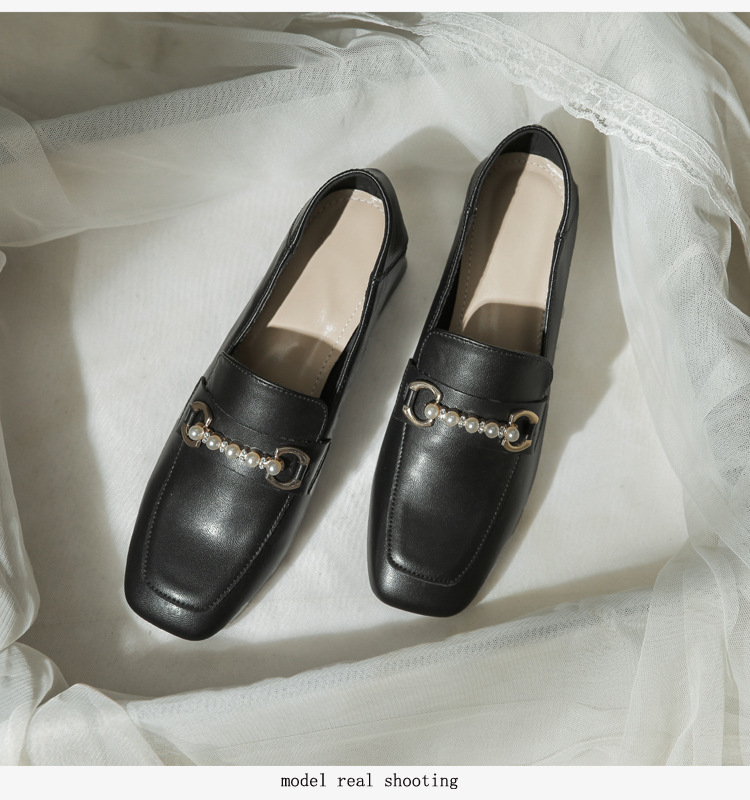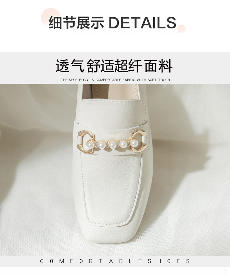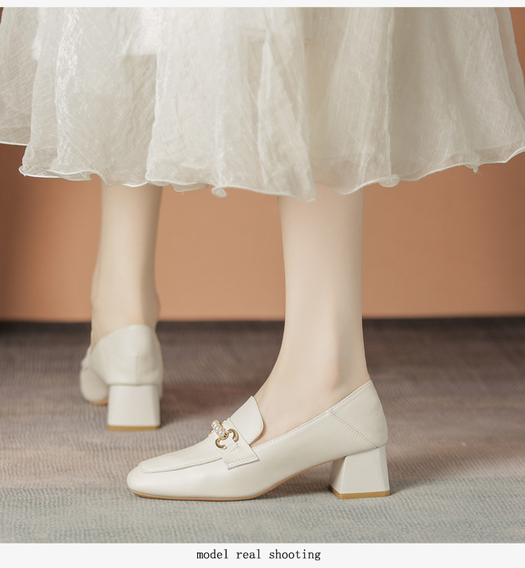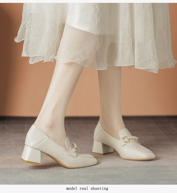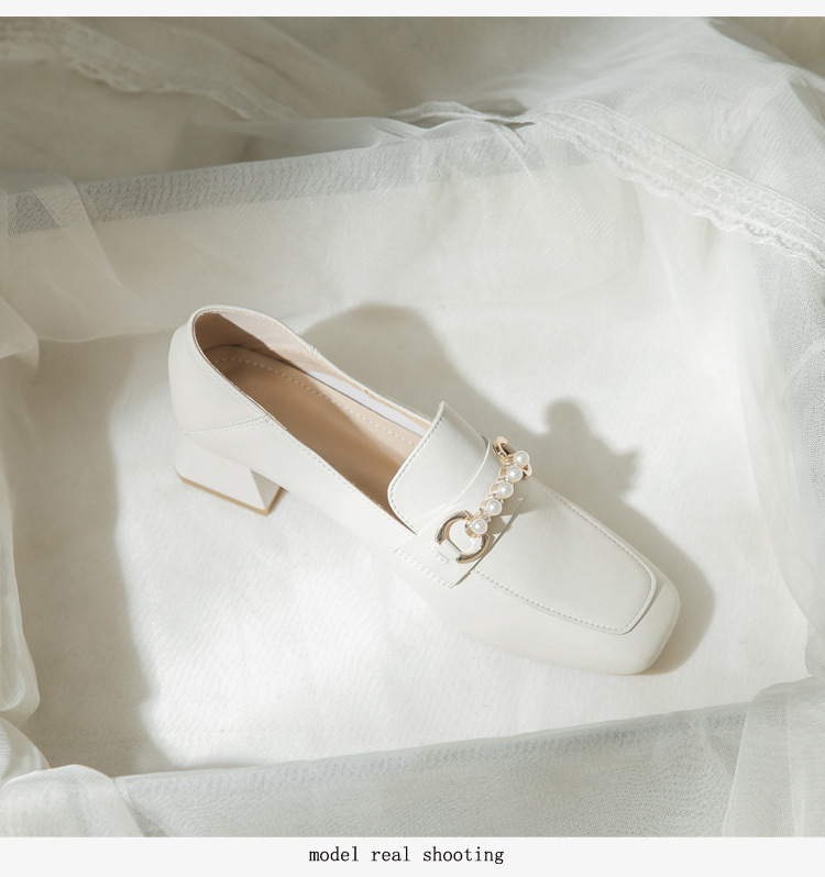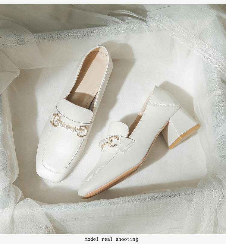 양가죽 정품 가죽 봄과 가을 새로운 청키 힐 영국 스타일 여성 가죽 신발 스퀘어 헤드 하이힐 싱글 신발 여성 로퍼 플러스 사이즈 4142스토어 가기