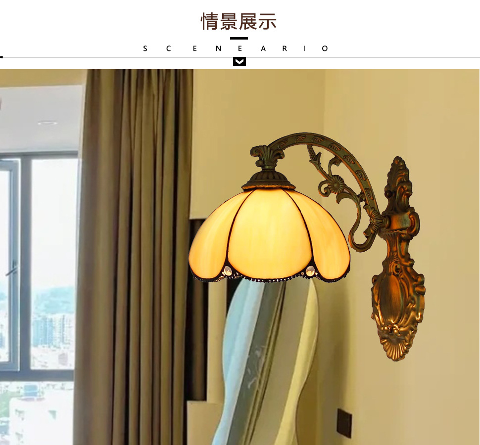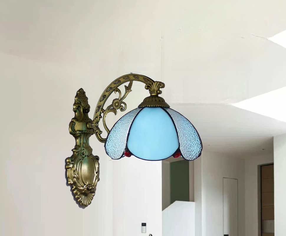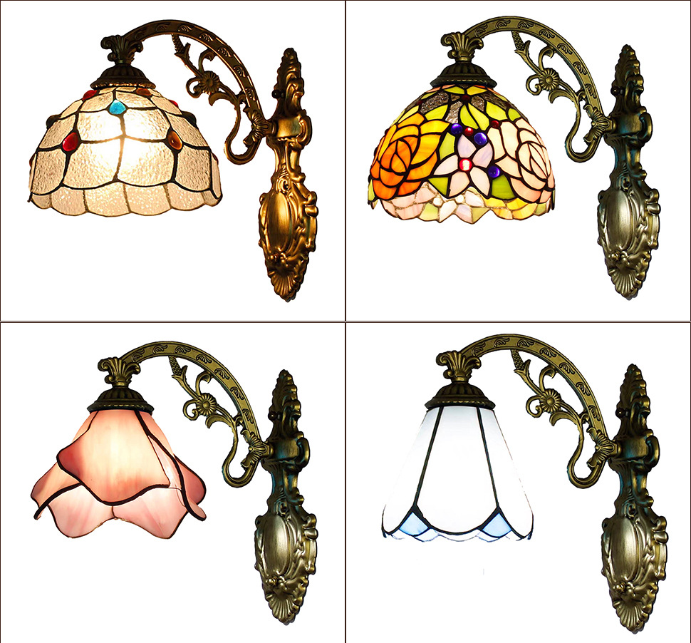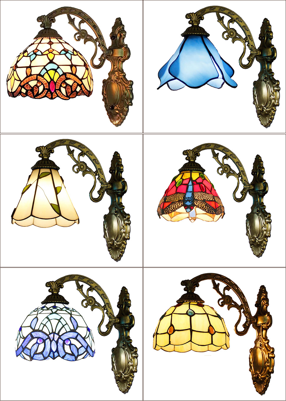 Ouhao Tiffany 유럽 벽 램프 침실 침실 램프 복고풍 창조적 인 거실 다이닝 룸 발코니 통로 계단 램프
